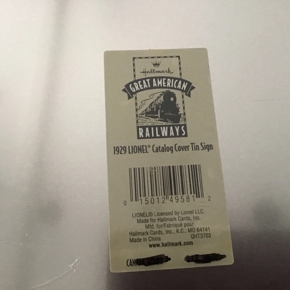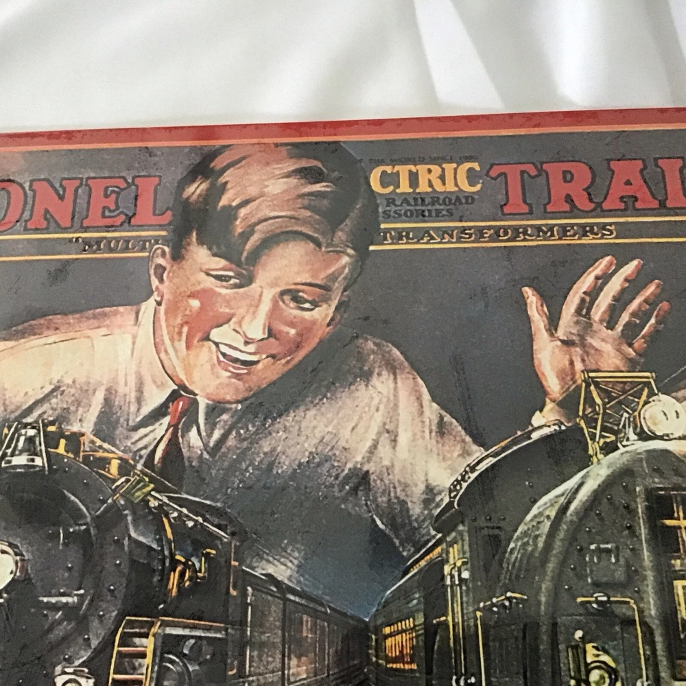 This cute tin sign was made in 1998 byHallmark. It is a reproduction of an old Lionel train catalog cover from 1929. It’s in great condition has never been used and has its original shrink wrap on it. It measures 14 x 11. Email with questions or for more pictures. I charge actual shipping and try to ship the most economical way. The San Luis Obispo Railroad Museum, SLORRM, located in San Luis Obispo California is housed in the original 1894 Southern Pacific Railroad Freighthouse. We are currently raising money for new projects and appreciate your looking and bidding. If you are in the California Central Coast area, please stop by the museum or visit on-line.