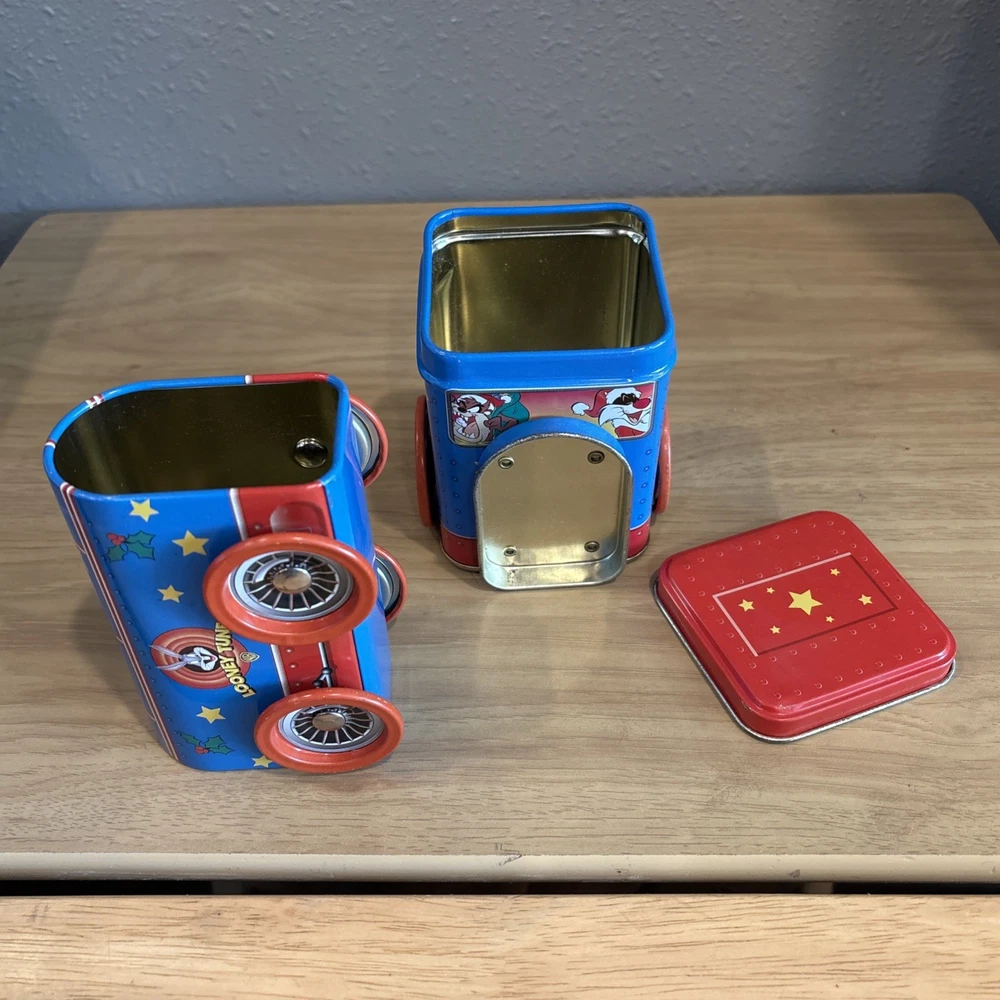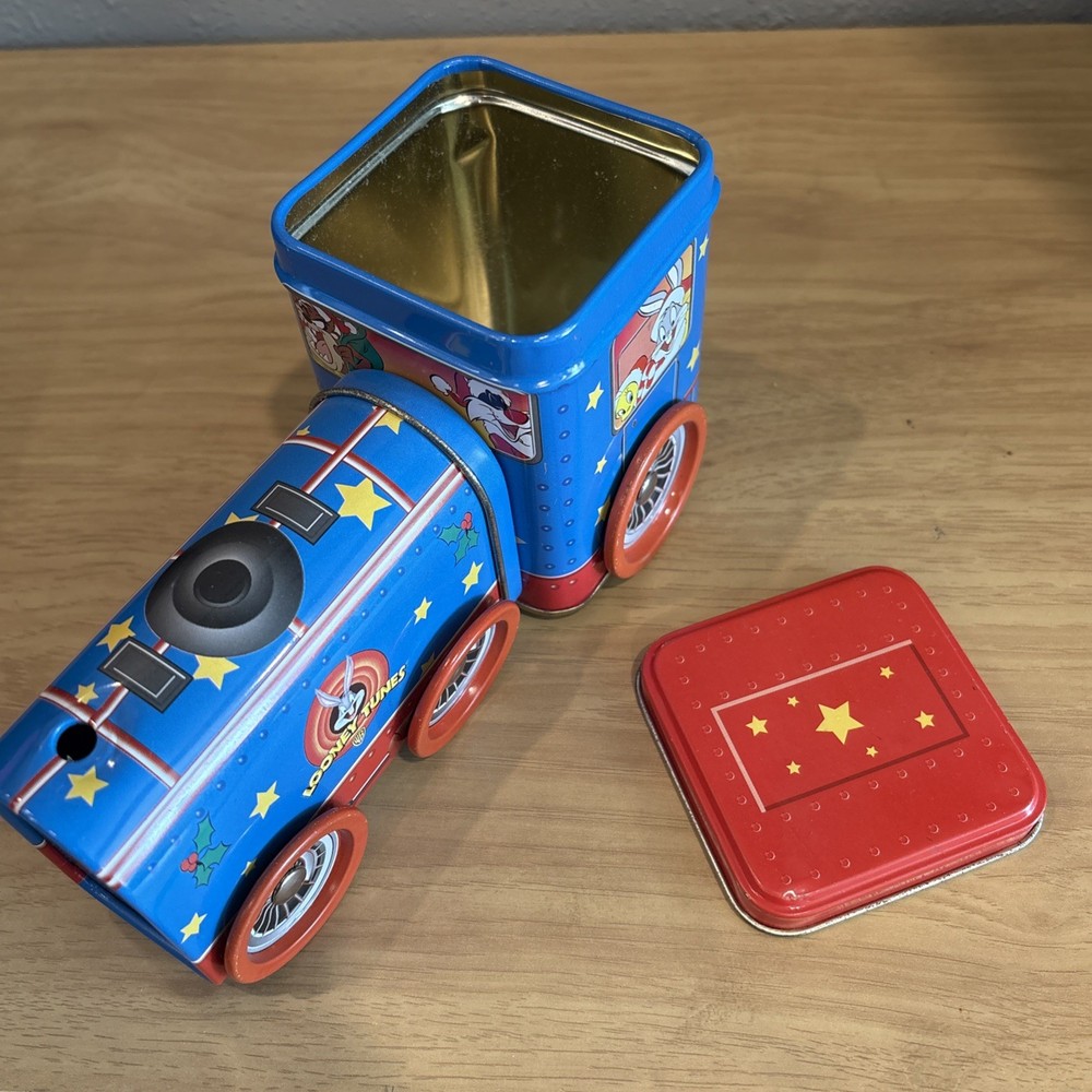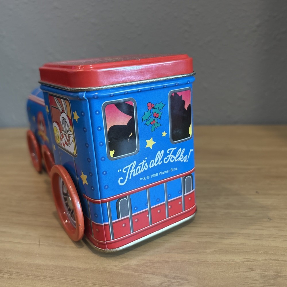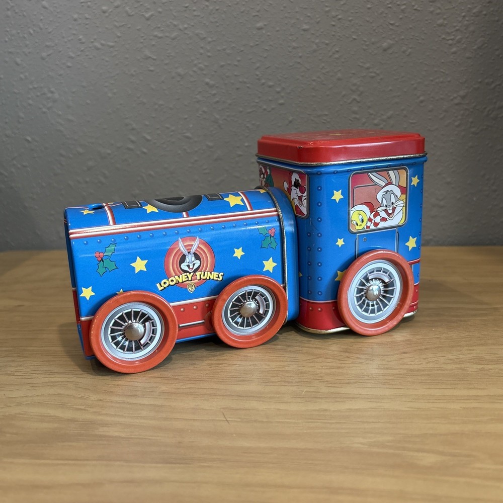 This 1998 Looney Tunes Christmas Tin Train features beloved characters Bugs Bunny, Taz, Tweety Bird, and Sylvester. The colorful and vibrant design is perfect for any Looney Tunes fan or collector. Made of durable tin, this train is a unique addition to any collection. The tin train is in great shape and has been carefully stored over the years. It would make a fantastic gift for any animation enthusiast or collector. Add this piece to your collection today and enjoy the whimsy of Looney Tunes.