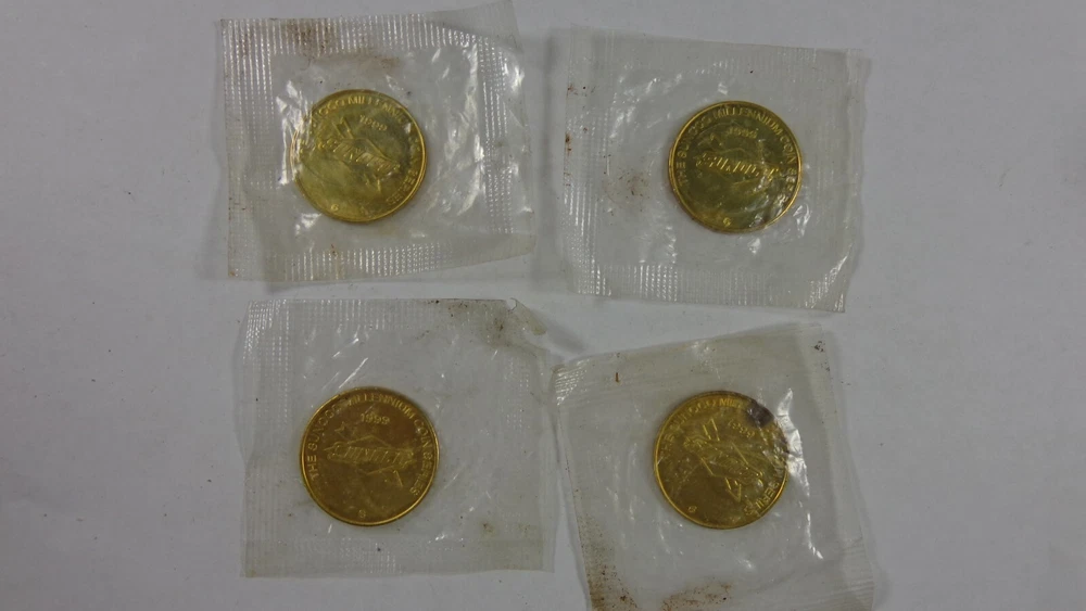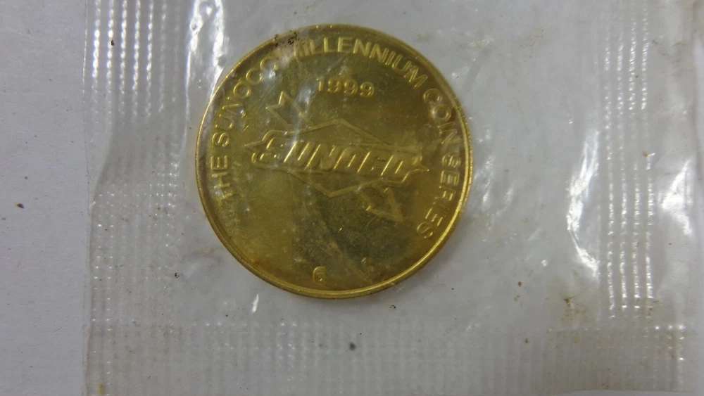 1999 Brass Sunoco Millennium Coin Series Token still in wrapper lot of 4 1999 Brass Sunoco Millennium Coin Series Token still in wrapper. lot of 4. UNOPENED COINS ARE IN ORGINAL WRAPPERS SHOW SOME DISCOLORATION REVIEW PICTURES Collectibles>Advertising>Gas & Oil>Gas & Oil Companies>Sunoco AB2