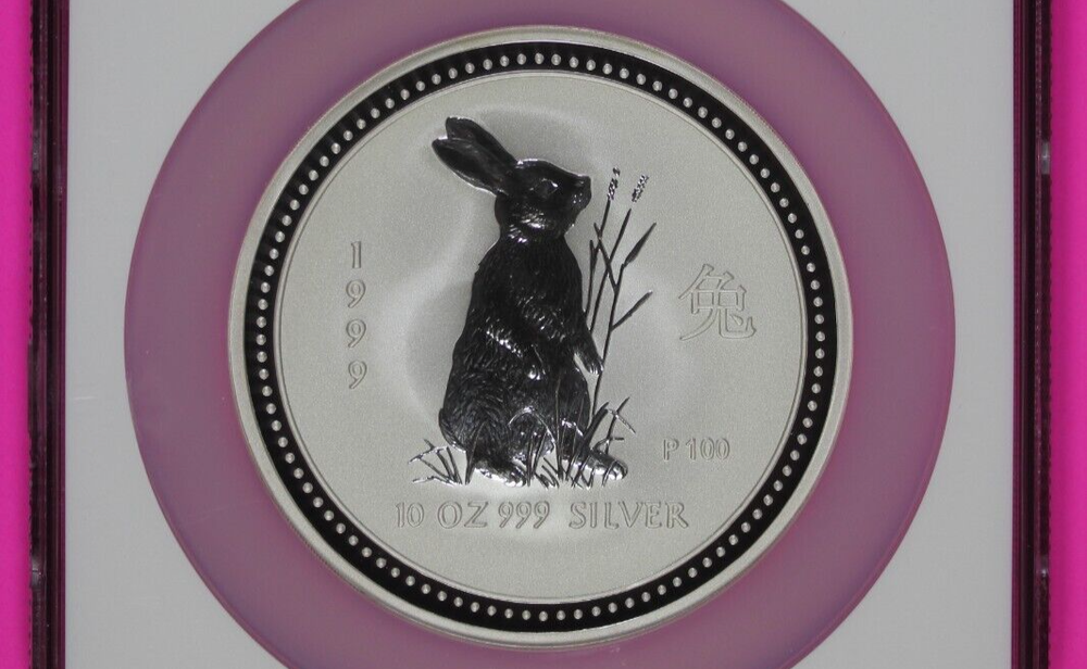Certifacte of Autheniticy: COA from the Chapman Collection Included Year: 1999 Coin: Year of the Rabbit Certification: NGC Strike Type: Proof Like Brand/Mint: The Perth Mint Grade: MS 69 Fineness: 0.999 Precious Metal Content per Unit: 10 oz Composition: Silver Country/Region of Manufacture: Australia