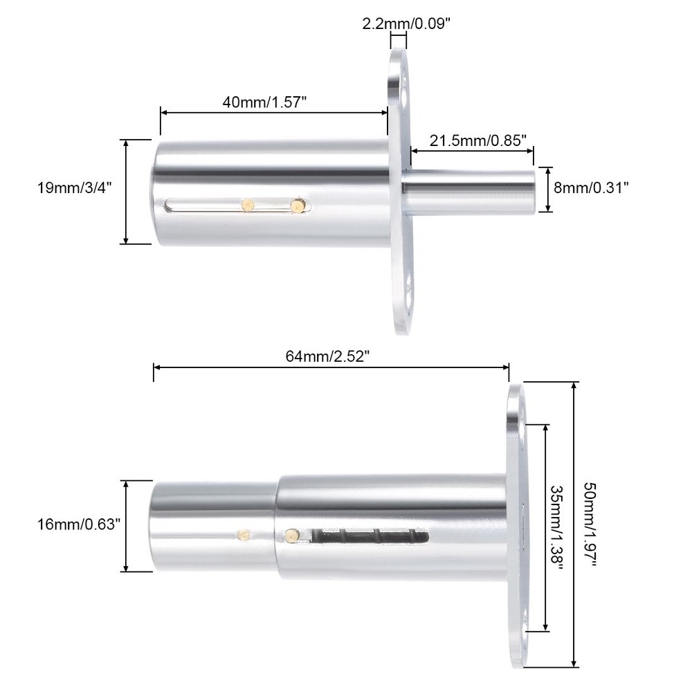 Document Specifications:Key Type: Keyed AlikeMaterial: Zinc Alloy Chrome FinishCylinder Diameter: 19mm / 3/4-inchCylinder Length: 40mm / 1.57-inchPlunger Pin Diameter: 8mm / 0.31-inchPlunger Pin Length: 21.5mm / 0.85-inchMounting Hole Dia: 5mm / 0.2-inchMounting Hole Centers Distance: 35mm / 1.38-inchOverall Size: 64 x 50mm / 2.52-inch x 1.97-inch (L*W) Package Contents:2 x Plunger Locks4 x Keys Descriptions:1. 40mm cylinder length, 19mm cylinder diameter.2. Perfect for cabinets, drawers, display cases, etc.3. Each lock comes with 2 keys, mounting screws are NOT included.4. Zinc alloy and chrome finished will resist wear and rust over time.5. This push lock is keyed alike, with key retaining.(the key can be removed from the lock from the locked and open position) Push Plunger Lock, 19mm x 40mm Cylinder Zinc Alloy Keyed Alike 2Pcs Specifications: Key Type: Keyed Alike Material: Zinc Alloy Chrome Finish Cylinder Diameter: 19mm / 3/4-inch Cylinder Length: 40mm / 1.57-inch Plunger Pin Diameter: 8mm / 0.31-inch Plunger Pin Length: 21.5mm / 0.85-inch Mounting Hole Dia: 5mm / 0.2-inch Mounting Hole Centers Distance: 35mm / 1.38-inch Overall Size: 64 x 50mm / 2.52-inch x 1.97-inch (L*W) Package Contents: 2 x Plunger Locks 4 x Keys Descriptions: 1. 40mm cylinder length, 19mm cylinder diameter. 2. Perfect for cabinets, drawers, display cases, etc. 3. Each lock comes with 2 keys, mounting screws are NOT included. 4. Zinc alloy and chrome finished will resist wear and rust over time. 5. This push lock is keyed alike, with key retaining.(the key can be removed from the lock from the locked and open position) Hot Item Payment 1.We accept eBay payment . 2.Payment must be received within 7 business days of auction closing. Shipping 1.We ship to your eBay or Paypal address. Please make sure your eBay and Paypal address is correct before you pay. 2.Items will be shipped within 1-3 business day when we received payment. 3.Delivery time depends on destination and other factors. Description Policy Push Plunger Lock, 19mm x 40mm Cylinder Zinc Alloy Keyed Alike 2Pcs Specifications: Key Type: Keyed Alike Material: Zinc Alloy Chrome Finish Cylinder Diameter: 19mm / 3/4-inch Cylinder Length: 40mm / 1.57-inch Plunger Pin Diameter: 8mm / 0.31-inch Plunger Pin Length: 21.5mm / 0.85-inch Mounting Hole Dia: 5mm / 0.2-inch Mounting Hole Centers Distance: 35mm / 1.38-inch Overall Size: 64 x 50mm / 2.52-inch x 1.97-inch (L*W) Package Contents: 2 x Plunger Locks 4 x Keys Descriptions: 1. 40mm cylinder length, 19mm cylinder diameter. 2. Perfect for cabinets, drawers, display cases, etc. 3. Each lock comes with 2 keys, mounting screws are NOT included. 4. Zinc alloy and chrome finished will resist wear and rust over time. 5. This push lock is keyed alike, with key retaining.(the key can be removed from the lock from the locked and open position) Hot Item Payment 1.We accept eBay payment . 2.Payment must be received within 7 business days of auction closing. Shipping 1.We ship to your eBay or Paypal address. Please make sure your eBay and Paypal address is correct before you pay. 2.Items will be shipped within 1-3 business day when we received payment. 3.Delivery time depends on destination and other factors.