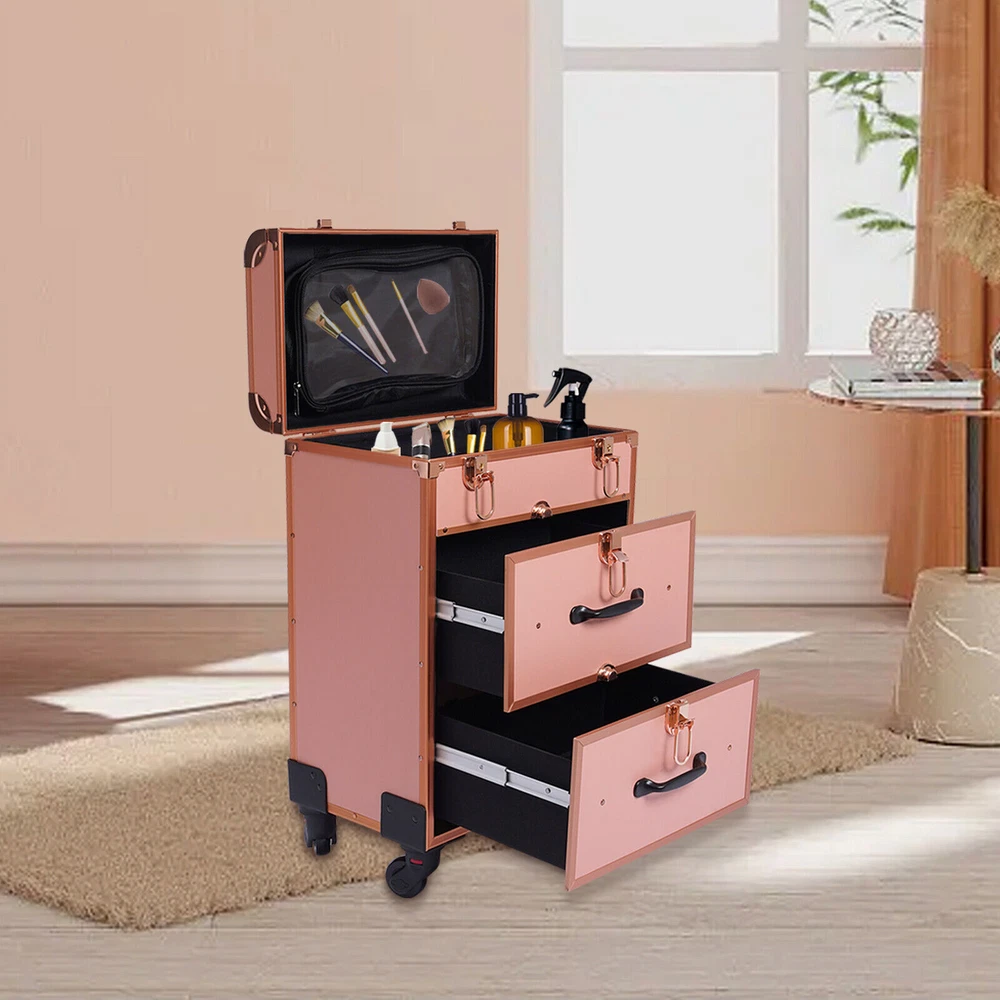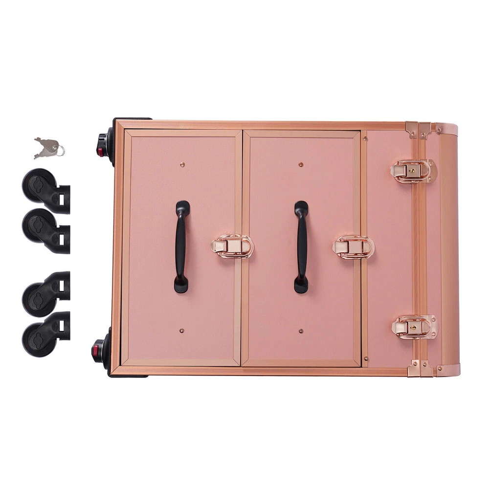 1*Alu Travel Rolling Makeup Train Case Cosmetic Trolley Makeup Storage Organizer