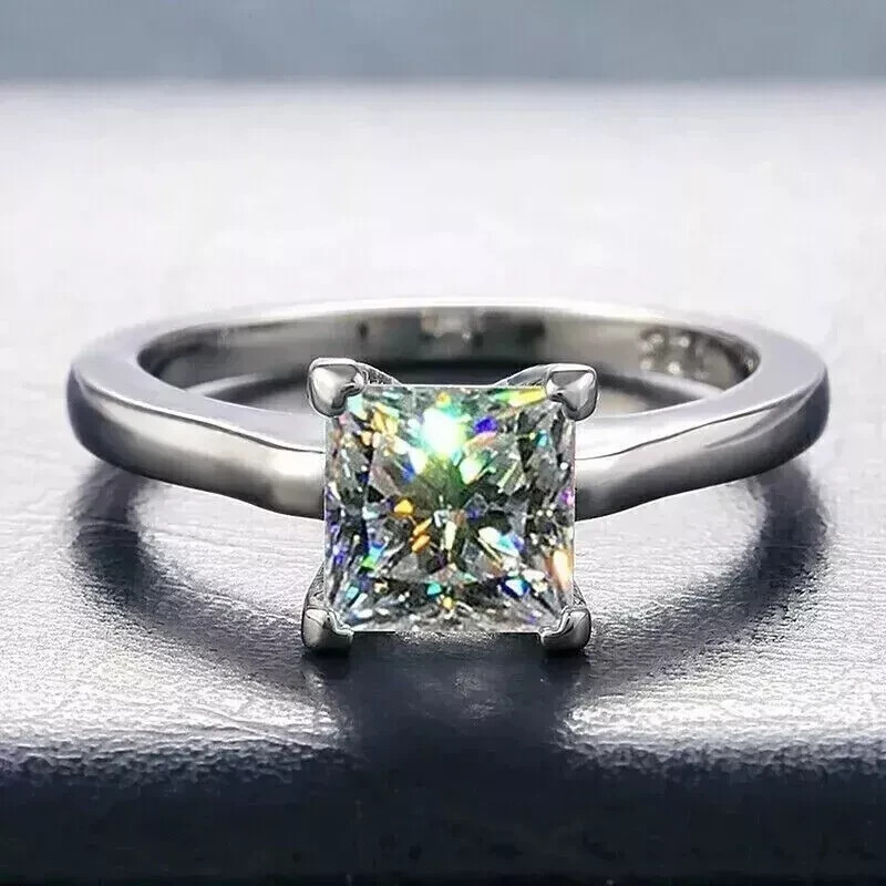 Home1Ct Princess Cut Moissanite Wedding Ring 14k White Gold