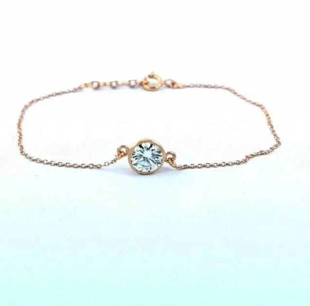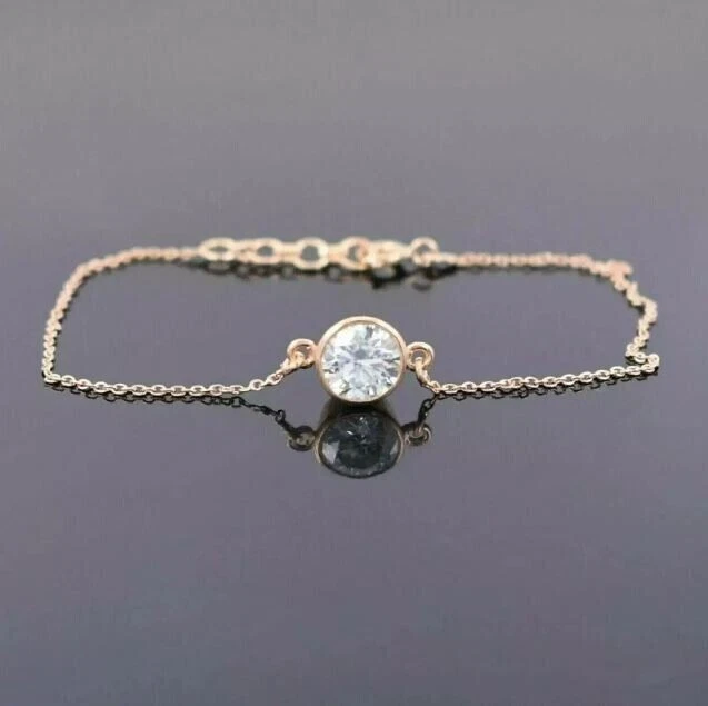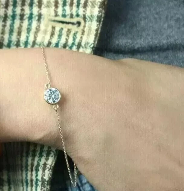 1Ct Round Simulated Diamond Women's Solitaire Bracelet In 14K Yellow Gold Plated