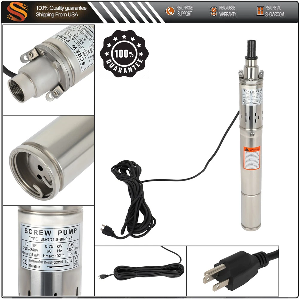 Description:Voltage: 220V/60HzPower: 0.75KW, 1HPMax. head: 102mMax. flow rate: 2.5m³/hSpeed: 3420r/minOutlet: 1 inchBlack circle cable: 15m(49ft)Maximum Working Pressure:147psi UPC Does not apply Brand AUT Manufacturer Part Number AUT1325250US Manufacturer Warranty 1 Year Horse Power 1HP Type Deep Well Pump Maximum Flow Rate 2.5 m3/h Maximum Head Lift 102m Voltage 220 V Power 750w Maximum Working Pressure 147 psi Speed 3420r/min Outlet 1" Condition New Autodealsparts 1Hp Screw Pump Submersible Water Deep Well Pump Stainless Steel 220V/60Hz 1" Description: Voltage: 220V/60Hz Power: 0.75KW, 1HP Max. head: 102m Max. flow rate: 2.5m³/h Speed: 3420r/min Outlet: 1 inch Black circle cable: 15m(49ft) Maximum Working Pressure:147psi Item Specifics Brand AUT Manufacturer Part Number AUT1325250US Manufacturer Warranty 1 Year Horse Power 1HP Type Deep Well Pump Maximum Flow Rate 2.5 m3/h Maximum Head Lift 102m Voltage 220 V Power 750w Maximum Working Pressure 147 psi Speed 3420r/min Outlet 1" Condition New Payment We only accept PayPal. Shipping 1. We only ship to confirmed paypal addresses, your paypal address must match your shipping address. 2. All domestic orders will be shipped via USPS, UPS or Fedex from our US warehouse and usually arrives to your door in about 2-7 business days. 3. If you have not received your shipment within 15 days from payment , please contact us. We will track the shipment and get back to you as soon as possible with a reply. 4. Local pick up is not available. Returns All of our brand new items come with a 30-days money-back guarantee. Contact Us If you have any question, please contact us. Warning Cancer and Reproductive Harm - www.P65Warnings.ca.gov. Autodealsparts DESCRIPTION PAYMENT SHIPPING RETURN POLICY CONTACT US Shop Category Store Home AC Compressor Mirrors Oxygen Sensor Roof Rack Engine Repair Kit Engine Air Intake & Exhaust Tonneau Cover Lawn Mower Accessories Car Tools Truck Bed Storage Box Oil Pump & Water Pump Door Handle Running Board Motor Transfer Case Motor Blend Door Actuator Center Console Armrest Secondary Air Pump Windshield Wiper Motor LED headlight Assembly Dipstick Horns complete struts fog lights Pillar Posts Fuse Holder Box winch Shocks Struts Struts & Suspension Kit & Hubs Window Visors Air suspension valve solenoid Fuel Injector Fuel Pump Throttle Body Window Regulator Turbo Turbocharger Window switch CV AXLE Coolant Overflow Tank Mud Flaps Bumper Side Marker Lights ignition Wing and Spoiler cv-2 Mass Air Flow Sensor-MAF Coilover snorkel kit Jeep lift supports Adj. Control Arm VVT Variable Valve Timing Door Lock Actuator Chainsaw Chain Car Moulding Cover Trim Steering Wheel Hole Adapter Golf Cart Accessories Bug Shield Motorcycle Accessories Ramps Cylinder Piston Gasket Kit Valve Cover Valve Rocker Arm Cylinder Head Cover Crankshaft Drive Clutch Radiator Shutter Garden Water Pump Tire Pressure Sensor Camshaft Hydraulic Lifters Dash Board Cover Fuel Tank Accessories Tensioner Sun Visor Power Steering System RV Third Brake Light Strut Mount Coil Springs Brake System Parts ◈ Brake Calipers ◈ Brake Drums & Brake Shoes Electric Dump Tarp Motor Clock Spring Other Hot Item 50' Pressure Washer Hose Non-Marking - 4000PSI 50ft Length Gray With Couplers USD 57.55 3 Deck Blade For John Deere 145 155C D140 D150 D160 LA130 GX21784 LA140 Gy20852 USD 33.17 3x Spindle For MTD 918-04126B Cub Cadet Troy-Bilt 50 Inch Deck 918-04125B RZT50 USD 66.38 42" Deck Rebuild Kit- Huskee LT4200 Dk-11 M1642 918-04822 618-04822 618-04822A USD 87.95 Deck Rebuild Kit for Hustler Raptor 52" Spindle Blade Pulley Belt 604214 603995 USD 125.44 New List Item 3 Spindle Assembly For Bobcat 2720759 48" 52" 61" Deck Zero Turn Mowers ZT223 USD 74.89 2 Spindle Assembly Fit for 46" Deck MTD 618-0241 918-0241 918-0431 w/ Pulley USD 58.29 2PK Double Pulley Spindle Assy For 918-04134B 918-04134D 46" Deck Lawn Tractor USD 59.21 2PK Spindle Assy For AYP 136818 136819 136819X 105483X 106037X 121622X 121658X USD 51.92 3PK Double Pulley Spindle Assy For 918-04134B 918-04134D 46" Deck Lawn Tractor USD 80.11 Picture Picture Picture 1Hp Screw Pump Submersible Water Deep Well Pump Stainless Steel 220V/60Hz 1" Description: Voltage: 220V/60Hz Power: 0.75KW, 1HP Max. head: 102m Max. flow rate: 2.5m³/h Speed: 3420r/min Outlet: 1 inch Black circle cable: 15m(49ft) Maximum Working Pressure:147psi Payment We only accept PayPal. Shipping 1. We only ship to confirmed paypal addresses, your paypal address must match your shipping address. 2. All domestic orders will be shipped via USPS, UPS or Fedex from our US warehouse and usually arrives to your door in about 2-7 business days. 3. If you have not received your shipment within 15 days from payment , please contact us. We will track the shipment and get back to you as soon as possible with a reply. 4. Local pick up is not available. Returns All of our brand new items come with a 30-days money-back guarantee. Contact Us If you have any question, please contact us. Warning Cancer and Reproductive Harm - www.P65Warnings.ca.gov. All rights reserved.