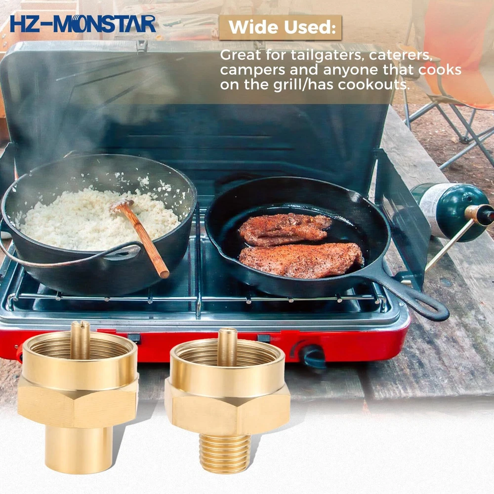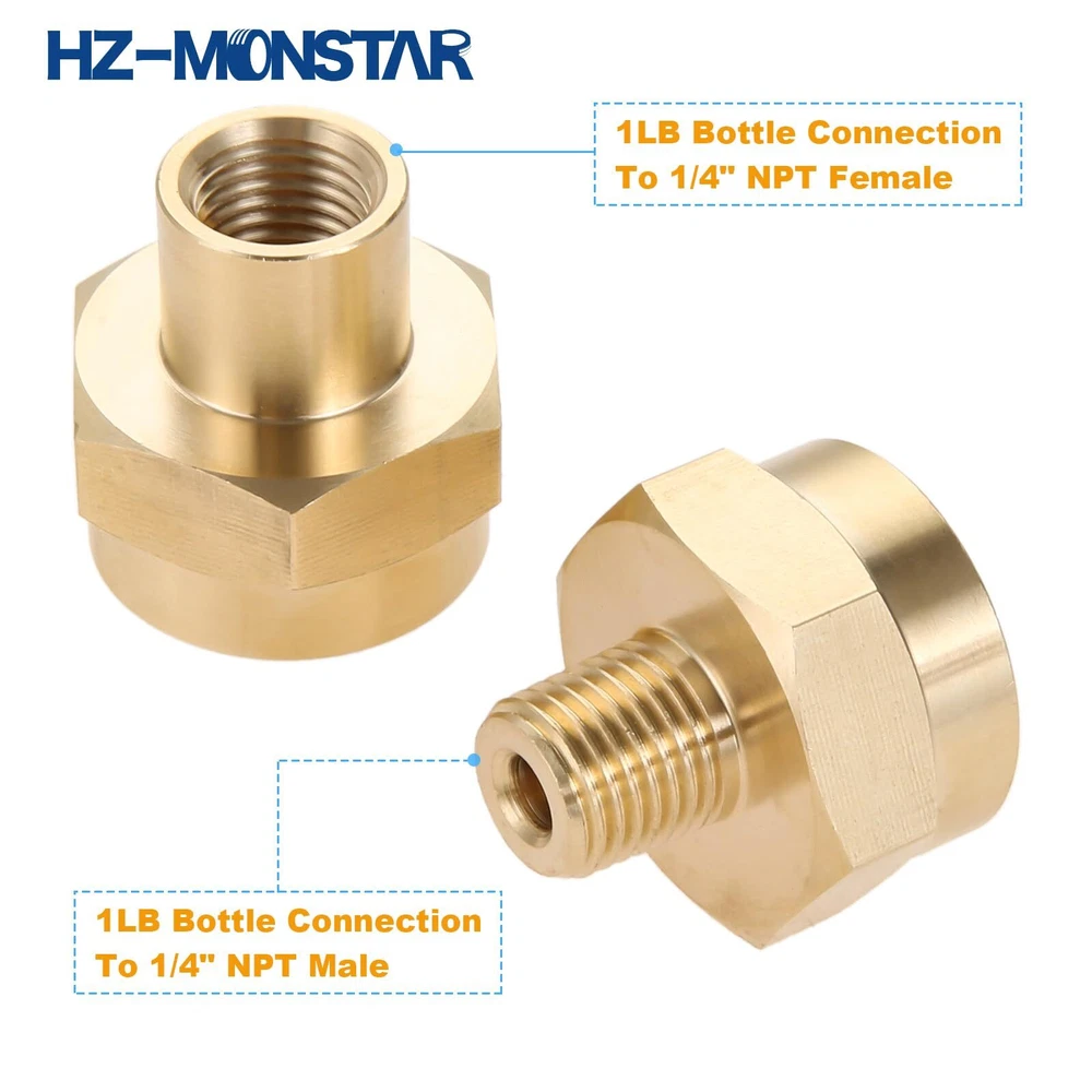 [Widely Use]---Great for tailgaters, caterers, campers and anyone that cooks on the grill/has cookouts. [Size]---1/4 Male Pipe Thread x 1"-20 Female Universal Fitting, connect your propane fitting or the QCC refill adapter. 1/4" NPT Female thread, can be used to connect male 1/4" NPT thread adapters. [Function]---Great for 1-lb tanks. Can be an adapter to get propane from a 1lb tank or to convert to regulator hose for grill. [Premium Quality]---High quality solid brass construction makes it corrosion resistant. [Package Incude]---1/4" NPT female tank brass fitting x 1, 1/4" male NPT thread x 1.