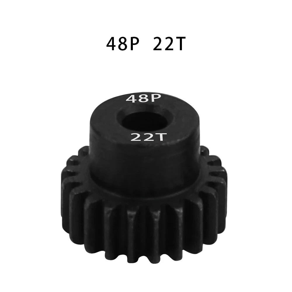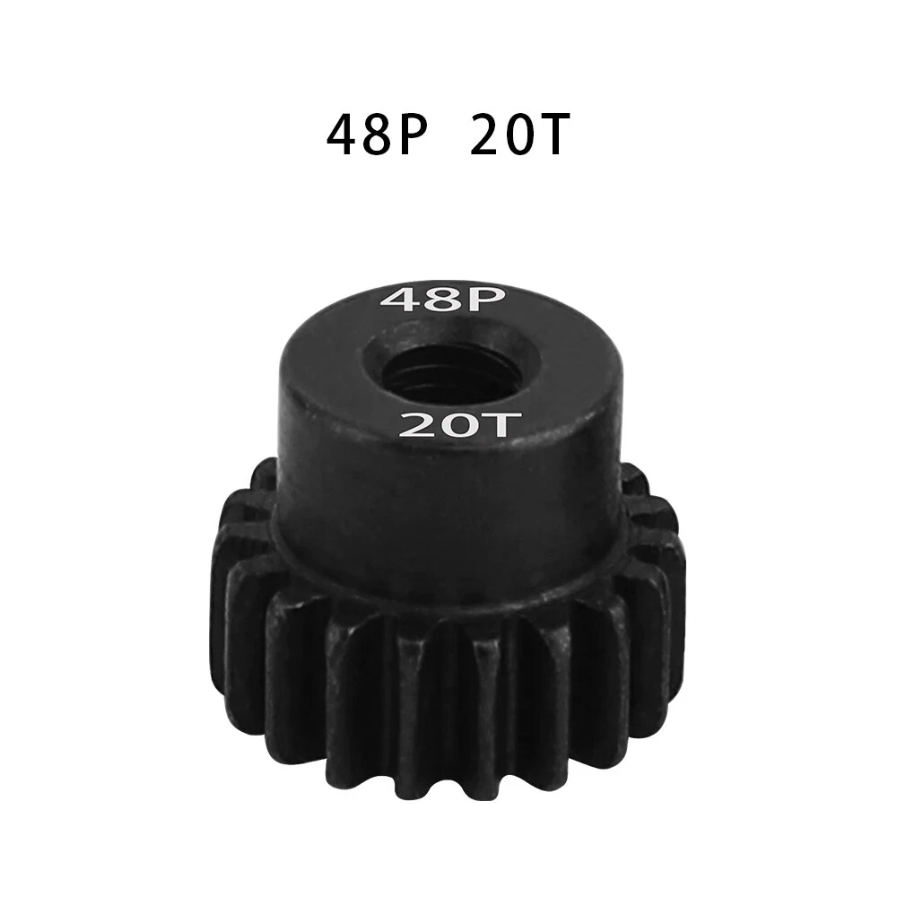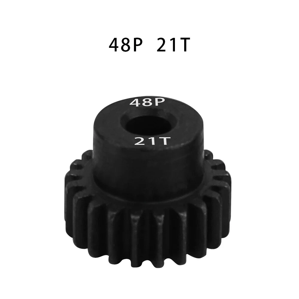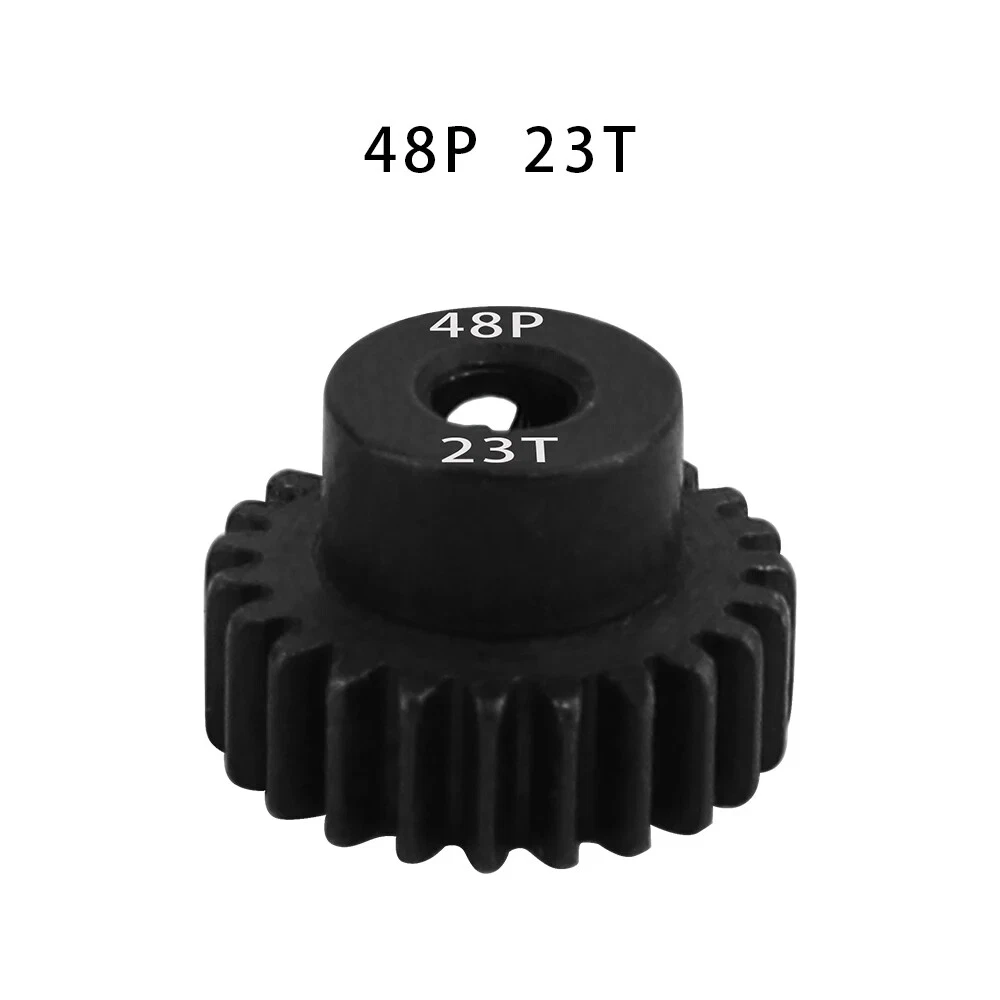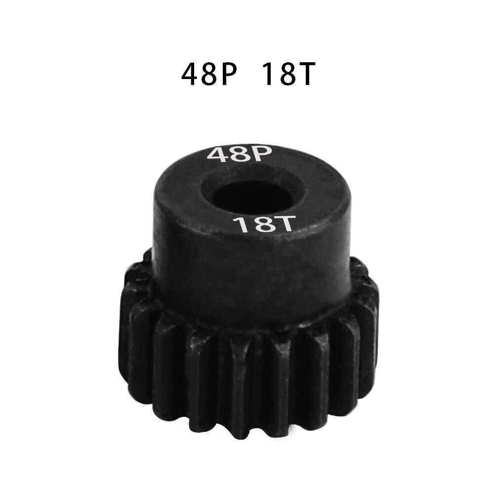 Description: 48P 3.175mm Black Hardened Steel Metal Pinion Motor Gear 14T-23T. Features: Easy installation, long service life and high quality. Hardened Steel Metal surface. Anti-rust treatment on the surface of the gear. Suitable for 1/10 RC model car 3.175mm shaft brushless brush motor. Specifications: Material: Hardened Steel Metal Color:Black Diametral pitch: 48P Teeth: 14T 15T 16T 17T 18T 19T 20T 21T 22T 23T Suitable shaft diameter: 3.175mm Suit for: 1/10 RC Car Brushed Brushless Motor. Package included: 1*48P 3.175mm Motor Pinion Gear