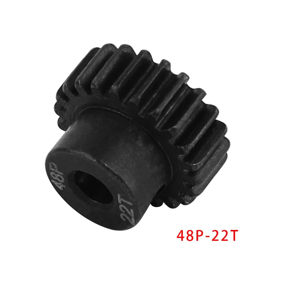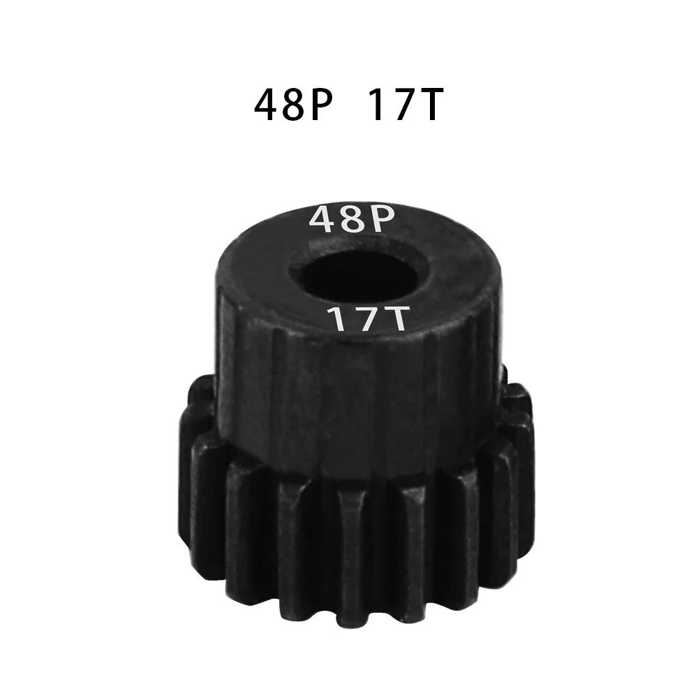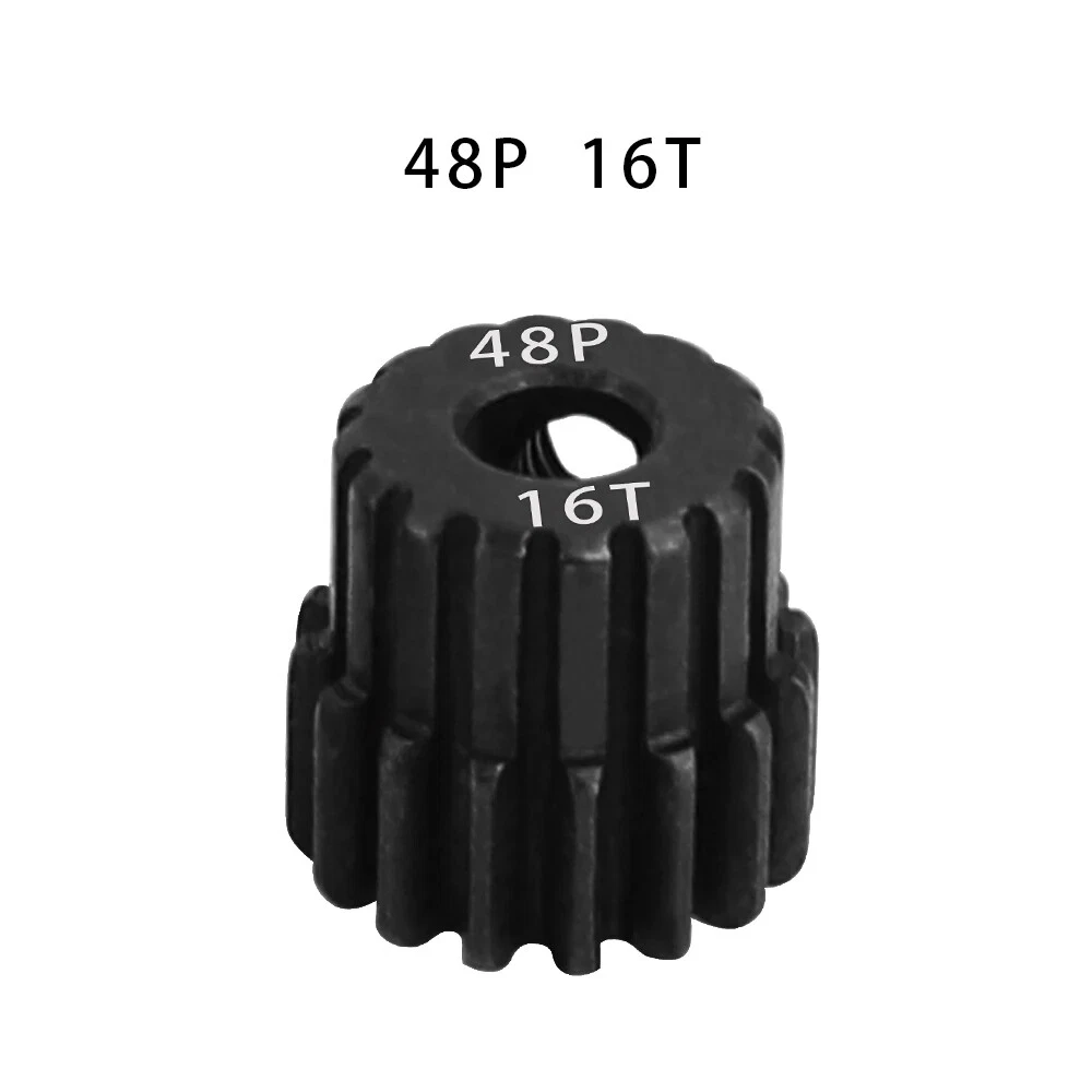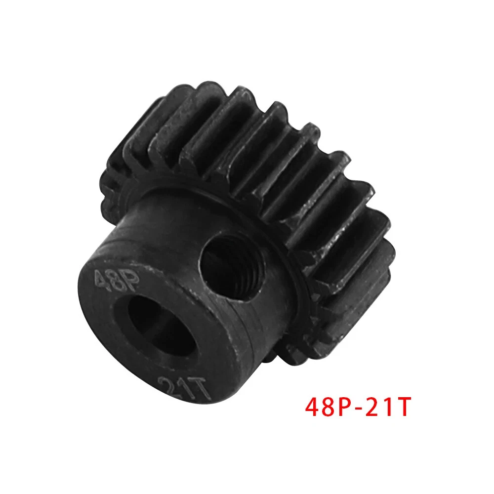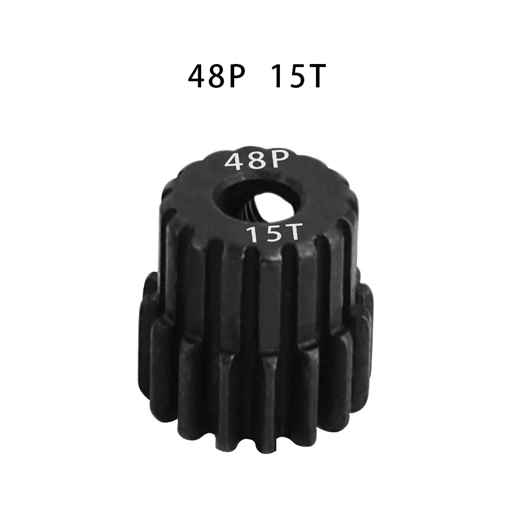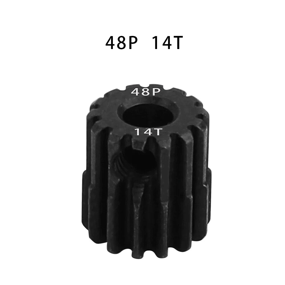 Description: 48P 3.175mm Black Hardened Steel Metal Pinion Motor Gear 14T-23T. Features: Easy installation, long service life and high quality. Hardened Steel Metal surface. Anti-rust treatment on the surface of the gear. Suitable for 1/10 RC model car 3.175mm shaft brushless brush motor. Specifications: Material: Hardened Steel Metal Color:Black Diametral pitch: 48P Teeth: 14T 15T 16T 17T 18T 19T 20T 21T 22T 23T Suitable shaft diameter: 3.175mm Suit for: 1/10 RC Car Brushed Brushless Motor. Package included: 1*48P 3.175mm Motor Pinion Gear