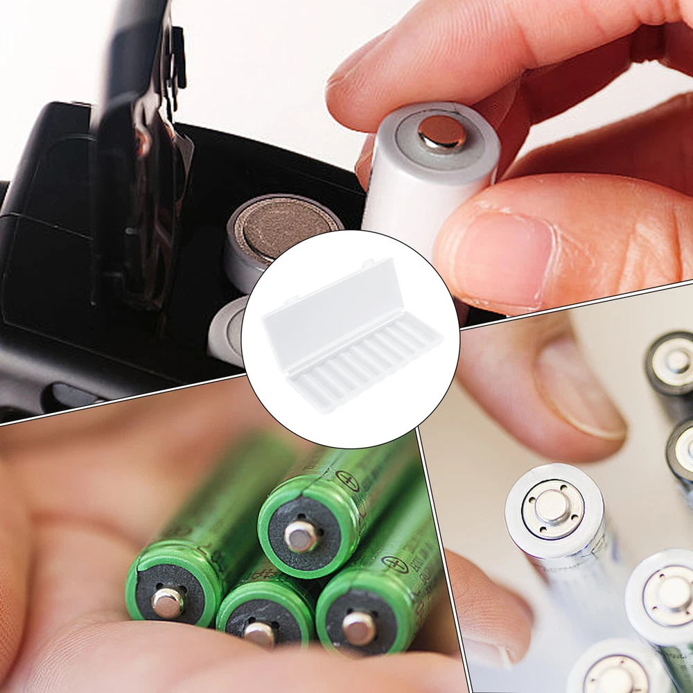 Bullet Points: Battery Security: Extend battery life while keeping your AA batteries secure in our protective case. Prevent short circuits and discharges for optimum battery management Spacious Convenience: No more worrying about cramped storage with our AA Battery Case's high-storage capacity. Accommodates up to 10 AA batteries, making it ideal for travel or home use Long-Lasting Material: Built with perfect materials, our AA battery carrying case ensures long-term durability and sturdiness, ensuring your batteries stay safe and secure for extended periods of use Space-saving Solution: Our AA Battery Case's compact design allows for easy placement in wardrobes, drawers, and more, saving valuable storage space. Keep your batteries organized and quickly accessible with this user-friendly storage solution Broad Use: Safely store and transport your AA batteries with our convenient case. Perfect for camping, home, journey, and school use, it ensures a dependable battery for all your devices Keep your AA batteries organized and protected with our sturdy and strong storage case. Our compact design can hold up to 10 AA batteries, making it perfect for any journey. Don't settle for disorganized batteries. Specification: Product name: AA Battery Case Type: Empty box Product material: PP material Product weight: 24.5g Product size: about 14.5x5x1.7cm/5.71x1.97x0.67 inches Product List: 1 * AA Battery Case Notes: Due to different lighting and screen settings, the product color may be slightly different from the picture. Due to the difference in manual measurement, please allow a 1-3cm difference in size.