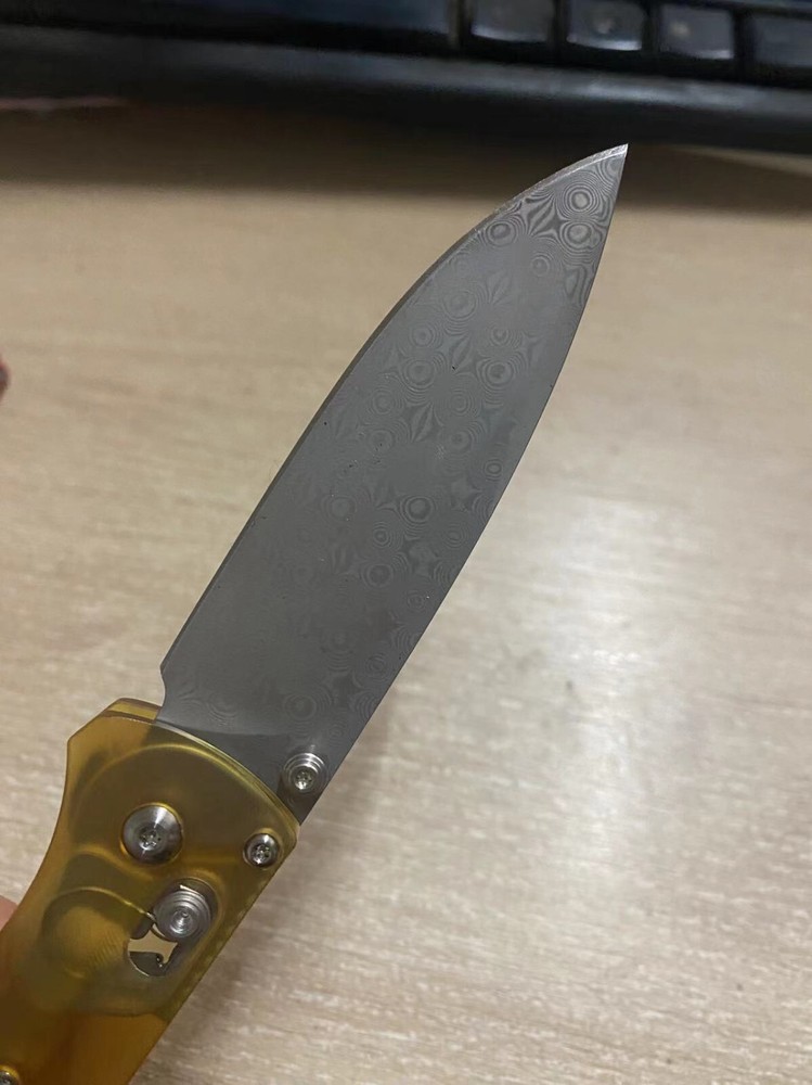 This high-quality Damascus steel clip point blade is the perfect replacement for your Benchmade Bugout 535. With a hardness of 58HRC, it is sure to provide a cutting edge that will last. The blade is manufactured in China and is a reproduction of the original. This blade is designed for ambidextrous use and features an axis lock type for easy opening and closing. The plain blade edge allows for a variety of cutting tasks, and its silver color adds a sleek look to your knife. Please note that this item includes only the blade component. Add this collectible folding knife component to your collection today. Fits for : Genuine Benchmade Bugout 535 Knives NOTE: Only the blade , excluding knives!!! Package Include : one blade Shipping *We can ship item by Speedpak,please make sure the address is correct before purchase. *Items of most orders will be shipped out within 1-4 business days upon receipt of your payment confirmation. *Delivery depends on destination and other factors, it may take up to more business days. *If there is any damage or shortage for your parcel, contact your Post Office or Express company immediately, Please send video or photos to our service staff at the same time. Terms & Conditions *All pictures are for illustration purpose only and Colors may vary slightly. Our store obeys all eBay Rules and Policies. *To Return an item you must contact us and take photos of your item to clearly show any damage or unusual aspects of it.Items must be returned in original condition with all original packaging. *All shipping and handing charges are non-refundable. Return delivery costs are the responsibility of the buyer. We will cover the cost if sending replacement/repaired items. About sales taxes *Import duties, taxes and charges are not included in the item price or shipping charges. Please check with your country’s customs office to determine what these additional costs will be prior to bidding/buying! Contact us You can contact me if you have any questions. We will reply you within 24- 48 hours. Our Business Hours(Beijing): 8:30A.M.-5:30P.M. Mon-Sat(except holidays).