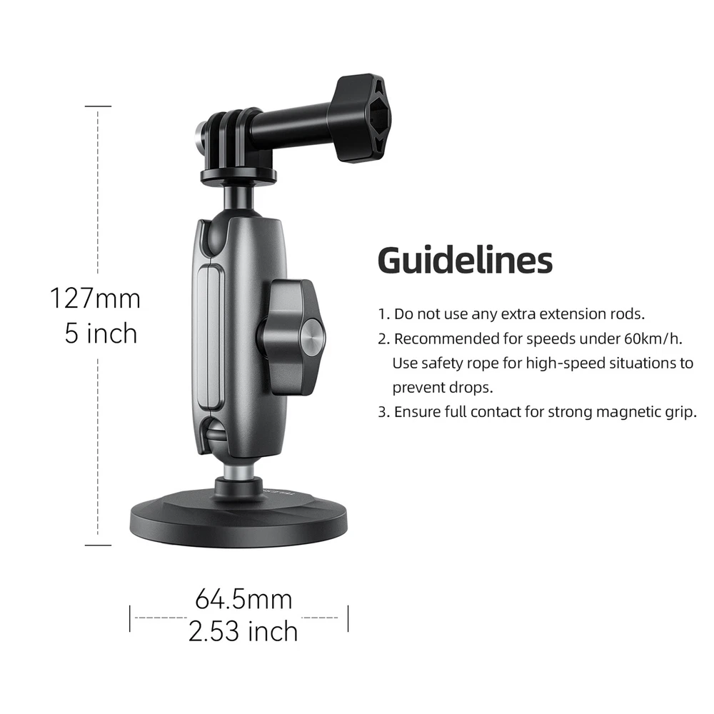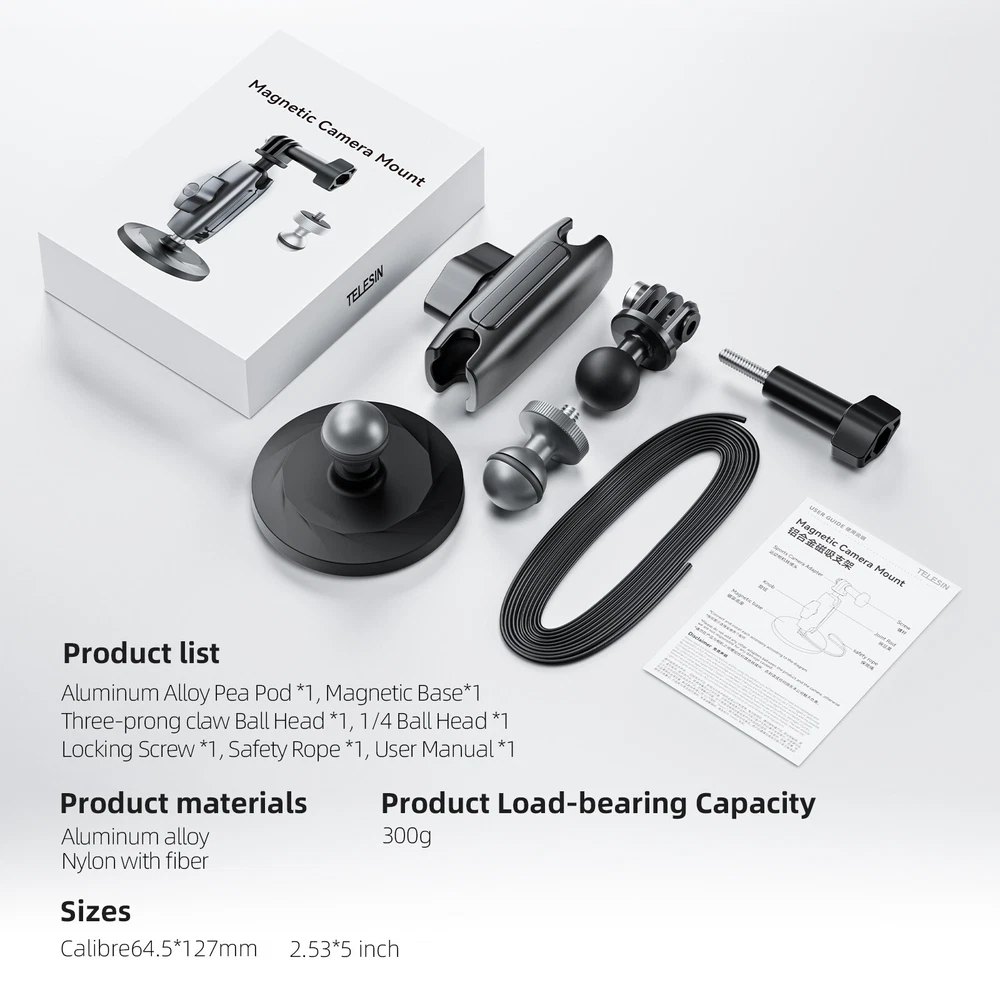 SAFE & SECURE SHOPPING 100% SATISFACTION GUARANTEED FAST SHIPPING Store Categories Store Categories You may also like 1PC Magnetic Mount Base Aluminium Alloy Bracket For Insta360 one X2/X3/RS Product Description Features: 1.Aluminium alloy magnetic suction bracket, suck and shoot, record at any time 2.Double-ball head, widely adapted. The set comes with a three-claw ball head and a 1/4 aluminium alloy ball head, so that the creation is not limited to the device. 3.Built-in 6pcs 3600GS neodymium magnets, can resist the inertia effect of the brake. 4.Firmly adsorbed without falling, parallel to the adsorption surface pulling force can reach 9KG equivalent to the weight of 9 litres of mineral water. 5.360°adjustable design angle as you like, the upper and lower ball head double joints adjust the angle wider than the single ball head type. 6.The bottom surface with soft rubber wrapped to avoid scratching the surface of the adsorption object Specifications: Material: Aluminum Alloy, Nylon with Fiber Suitable for: For Insta360 one X2/X3/RS, for DJI Osmo Action 3/4, for Gopro Size: 127x64.5mm Quantity: 1 Set Package includes: 1x Aluminum Alloy Pea Pod 1x Magnetic Base 1x Three-Claw Ball Head 1x 1/4 Ball Head 1x Locking Screw 1x Safety Rope Note: Only the above package content, other products are not included. Do not use any extra extension rods. Recommended for speeds under 60km/h. Use safety rope for high-speed situations to prevent drops. Ensure full contact for strong magnetic grip. Shipping Returns Contact Us Payment Shipping We ship most of our orders within 24 hours, and may up to 48 hours. If you want faster shipping way, please contact us before making a payment. Sometimes due to problems with our transportation company system, your shipping information may be delayed to update. We recommend that you try again after 3-4 days. If you still haven't checked the shipping information, you can contact us via ebay message. Returns 1. 30 days warranty from the purchased date. Please contact us via email before returning the defective item. 2.Our warranty does not extended to any product that are physically damaged or that are not under normal operating conditions as result of misuse or improper installation on the buyer/user's part. 3.Return items should include the original packaging and all accessories. buyers MUST contact us for the returning address. 4.In all cases, buyers pay shipping fees at their own cost to return products for exchange or refund. We will be responsible for the postage of replacements. Refund will be made upon receipt of the returned item. Contact Us Pls contact us if you have any problems,we will try our best to solve for you Payment We accept all verified payment from eBay. Copyright © 2022 Tongtool