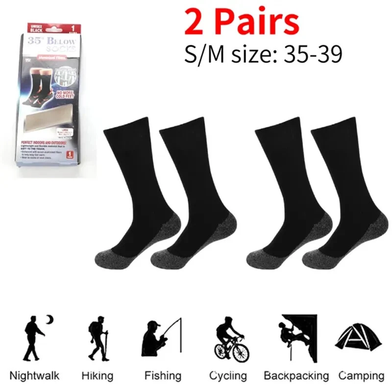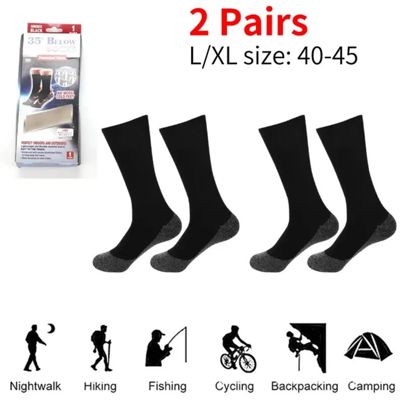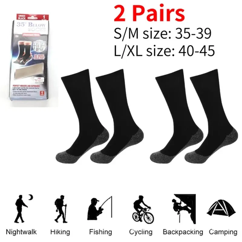 1Pair Winter Self-Heating Socks Thermal Heated Socks Soft Elastic Thicken Anti-Slip Socks For Women Men Outdoor Ski Tube Socks Gallery Description 1Pair Winter Self-Heating Socks Thermal Heated Socks Soft Elastic Thicken Anti-Slip Socks For Women Men Outdoor Ski Tube Socks Breathable 35 Degree Constant Temperature Heat Stockings Acetate Fibers Heating Fiber Stockings Thermal Socks for Indoor Outdoor Feature: 1. Breathable & Warm: Added real heating fiber. Comfortable and dry in the coldest, most extreme environments. Lightweight and breathable V-shaped aluminum wires reflect heat and moisture to keep feet warm and dry. 2. Medium Thickness: Despite their warmth, these boot socks are significantly thinner than other thermal socks, providing insulation and heat retention with a thinner construction. Wear these for all-day comfort beneath your boots, with shoes or slippers, or while lounging around the house. 3. Comfortable Fit: The warm socks have a snug fit and an elastic top that ensures they stay firmly on your feet without slipping or sliding. 4. Warmest Thermal Socks: These thermal socks will envelop your feet in cozy warmth, carrying you through the most brutal of winter days. Say goodbye to cold feet and frozen toes at the end of a long day spent outside in extremely cold weather. 5. Ideal For Winter Sports: Snow shoveling, running, hiking, skiing, snowboarding, hiking, hockey, and other sports. Specification: Hose Height: Knee-High Finger-separated: No Sport Type: Running Department Name: Unisex Material: Acetate Fiber Main fabric composition: Acetate Fiber Small size: 35-39 yards Large size: 40-45 yards Note: Due to the different monitor and light effect, the actual color of the item might be slightly different from the color showed on the pictures. Thank you! Please allow 1-2cm measuring deviation due to manual measurement. 1pair x Thermostatic Socks Shipping Free Worldwide Shipping Payment Policy Safe and secure payement with PayPal! Return Policy 30 Days returns!