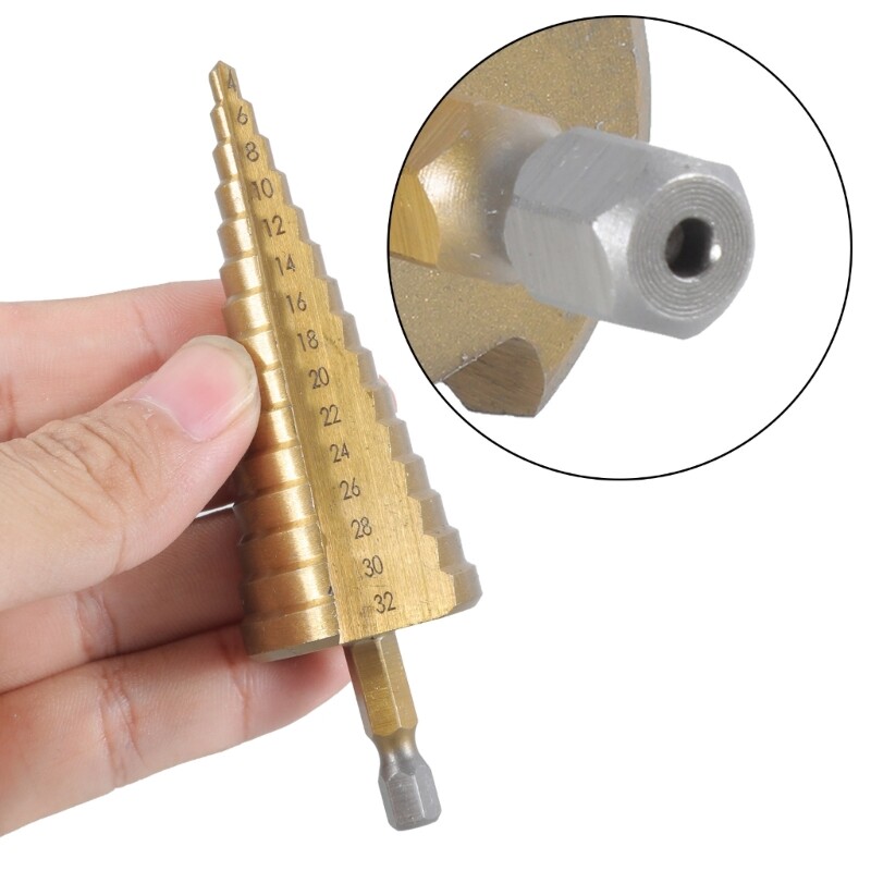 This HSS step drill bit is a game-changer for DIY projects! It cuts through steel, plastic, and brass effortlessly thanks to the high-quality steel and friction-reducing coating. No more swapping bits—the multiple sizes (4-32mm) handle different holes smoothly. The triangular shank ensures a secure grip, and the sturdy build lasts. Perfect for clean, precise drilling every time. Highly recommend!