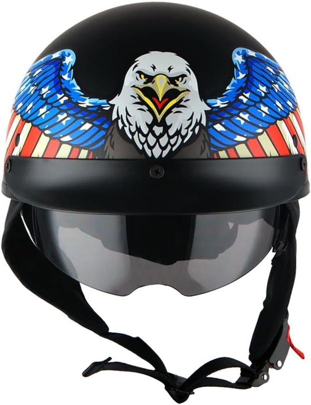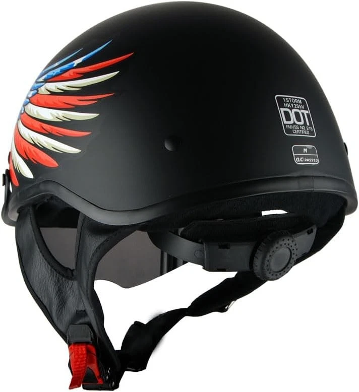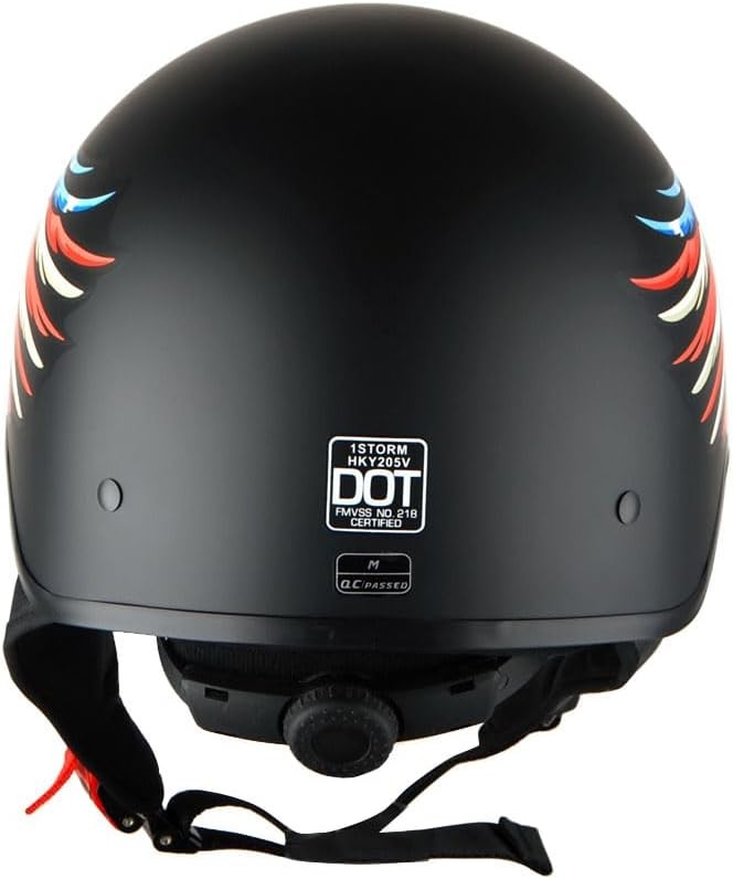 1Storm Motorcycle Half Face Helmet Mopeds M (22.4-22.8 Inch), Eagle Black Description Helmet Size Chart S 55-56 CM 21.7/22.0 Inch M 57-58 CM 22.4/22.8 Inch L 59-60 CM 23.2/23.6 Inch XL 61-62 CM 24.0/24.4 Helmet Size Tips (1)Wrap a measuring tape around your head about a half-inch above eyebrows (2)Take measurement two to three times to pick the largest one. Features: Size M (57-58 CM,22.4/22.8 Inch) Stylish Half Face Helmet with retractable Inner Smoked Visor; Light Weight Durable Aerodynamic Thermoplastic Alloy Shell; Beautiful Glossy UV Protective Finish; Removable and Washable Padding; DOT Approved; Meets Federal Motor Vehicle Safety Standard 218 (FMVSS 218). Product Details: Certificate Type: DOT Shell Type: Hard Specification Met: DOT Shape: Aerodynamic Manufacturer: Power Gear Motorsports Model Name: HKY205V Item Package Dimensions L x W x H: 12.8 x 9.85 x 7.55 inches Package Weight: 1.25 Kilograms Item Dimensions LxWxH: 13 x 10 x 7 inches Brand Name: 1Storm Suggested Users: unisex-adult Number of Items: 1 Part Number: HKY205V Included Components: Motorcycle Helmet Outer Material: Thermoplastic Size: M (22.4-22.8 Inch) Color: Eagle Black Brand: 1Storm Vehicle Service Type: Motorcycle, Scooter Material: Plastic Sport: Motorcycling Handling We will ship all orders within 1 business day of payment. Delivery We Do Not Ship Outside of the Continental US. Return Policy All items qualify for returns within 30 days of receipt. Buyer is responsible for return shipping on any item that is not damaged. Feedback We take our reputation seriously, we buy and sell online, so we understand the value of trust. If you are unsatisfied with your order, please contact us and we will work with you to resolve it to your satisfaction.