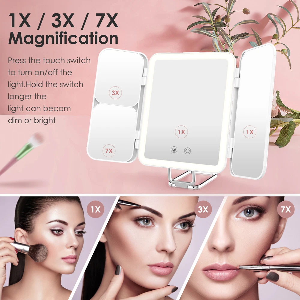 1X/3X/7X Magnification Folding Makeup Mirror Vanity Bathroom Travel Rechargeable