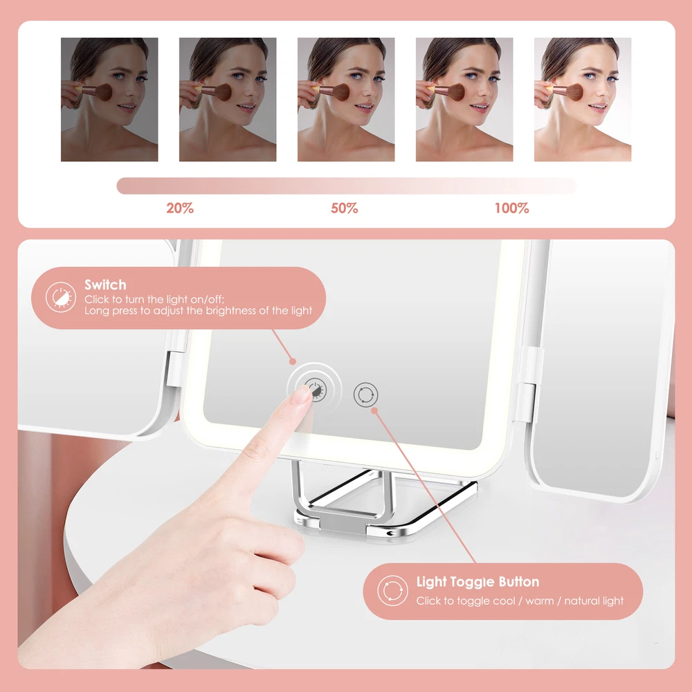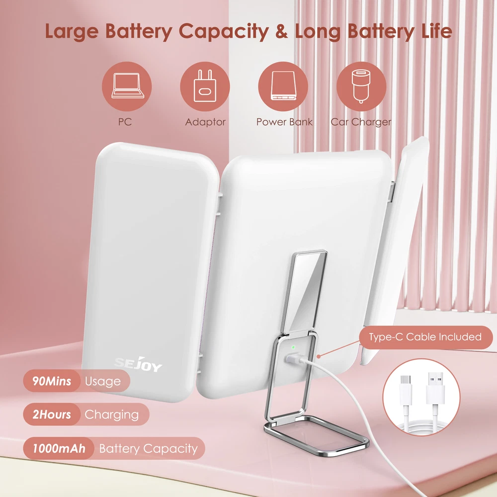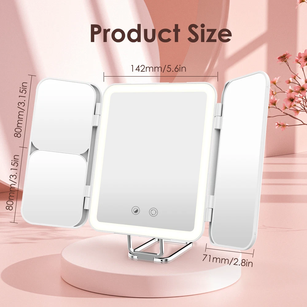 Item Length: 5.6 in Features: Folding, LED Lighted, Magnifying, Portable, Touch Sensor Shape: Rectangle MPN: Does Not Apply Item Height: 6.3 in 3 Color Lighting: White, natural, warm Frame Color: White Era: 21st Century (2000-Now) Brand: SEJOY Frame Finish: Polished Power Source: Usb Charging Item Width: 9 in Manufacturer: Fit You Frame Material: Metal Mounting: Freestanding Unfolded length: 11.3 in Lighting Technology: LED Type: Make-up Mirror Department: Adult