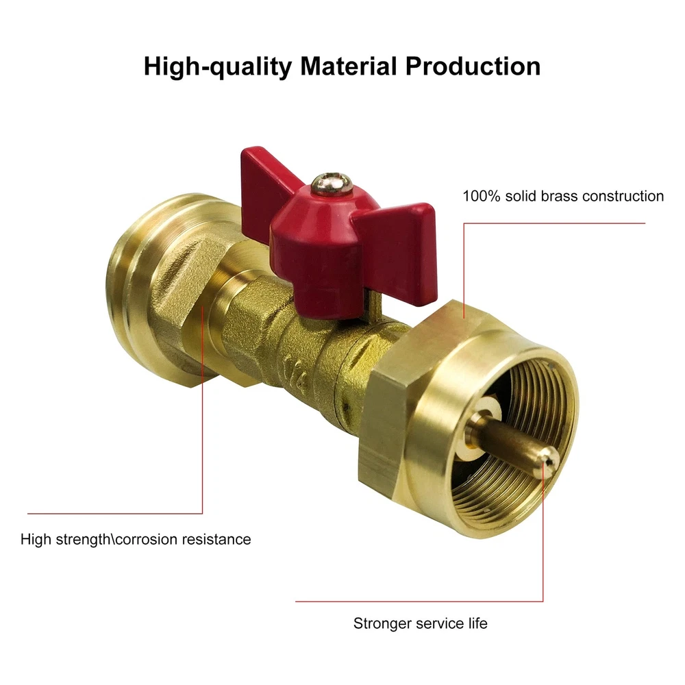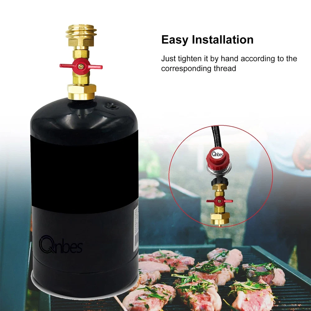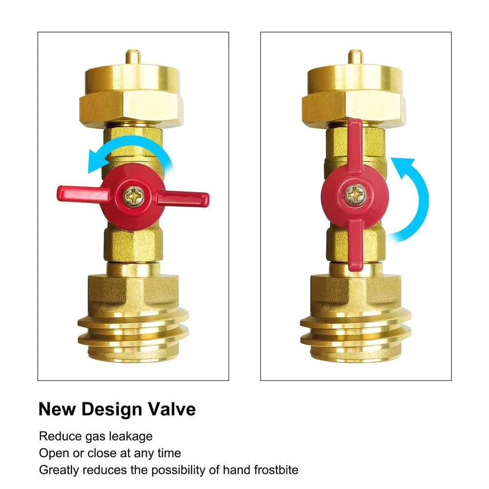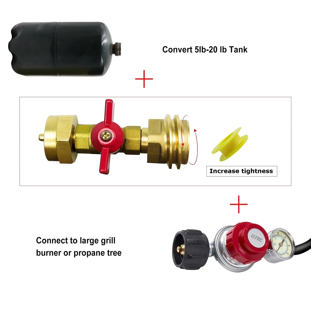 Accurate Conversion -- Propane tank adapter with valve convert 1 pound tank to larger 5lb-30lb tank and easily connect to large grill/burner or propane tree. The export end fit for QCC1/POL adapter hose regulator used for more convenient outdoor cooking. Upgrade Valve -- Designed a valve for the regulator, reduce the possibility of frostbite on your hands. No need to worry about the connection sequence of pipes or small propane tanks, no worry about your family members being hurt when connect 1lb adjust adapter, more safely and securely! Perfectly Sealed -- The adapter assembly adopts NPT threaded connection with better sealing performance, and add the special sealant. The grill can be easily moved, providing a safe connection from the grill to other appliances. Brass Material -- High-quality solid brass structure, high strength, durability, and longer service life. Just tighten it by hand according to the corresponding thread and wrap it with the attached special sealing tape, easy and quick to operate. Friendly Service -- The propane adapter converter provides 2-year worry-free and return service. If you find that it is not suitable after purchase, or if it is damaged during transportation, please us by .