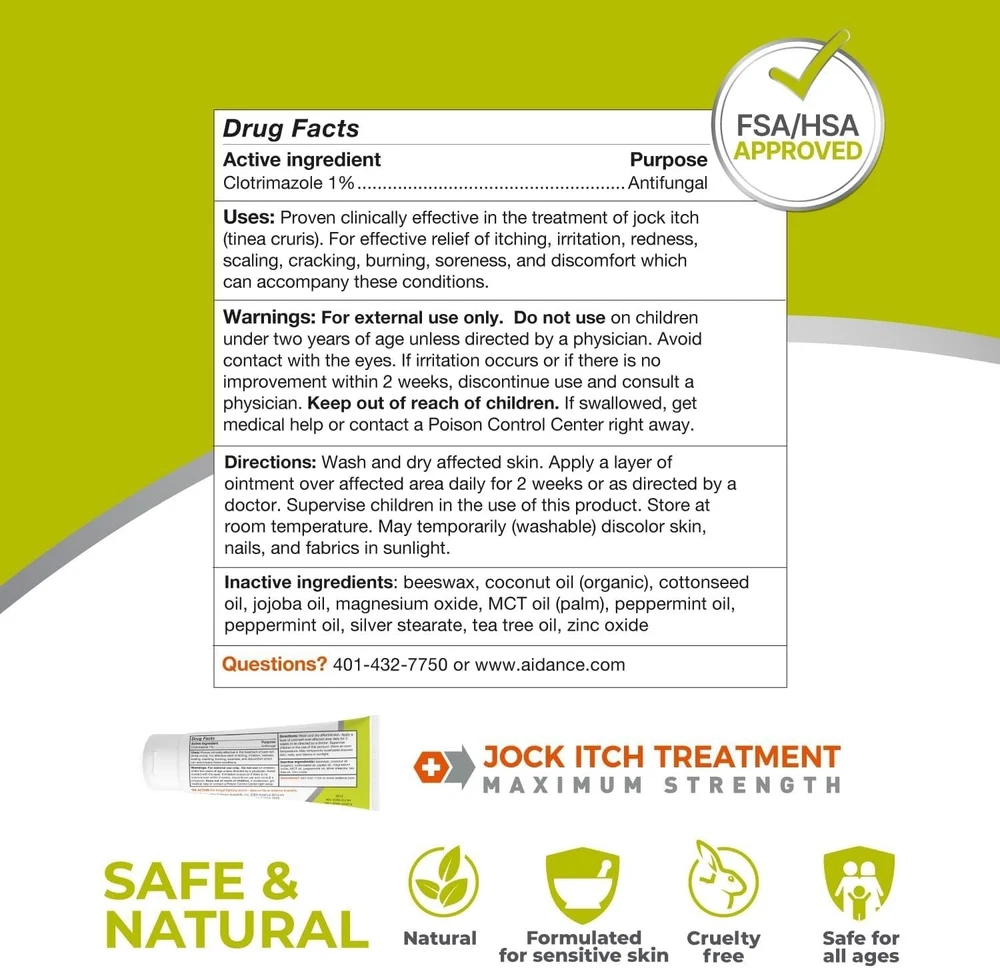 1oz Jock Itch Medicine Cream - Antifungal Relief for Sensitive Skin - Unscented ‹ › ‹ › ‹ › ‹ › ‹ › ‹ › ‹ › ‹ › 1oz Jock Itch Medicine Cream - Antifungal Relief for Sensitive Skin - Unscented formula for comfort and convenience Features: Powerful Jock Itch Cream: Formulated to quickly treat and heal Jock Itch and associated symptoms for both men and women. Clinically Proven Effective: Contains 1% Clotrimazole which cures most fungal jock itch infections, providing fast soothing relief for burning, itchy, scaly, and inflamed skin. Unique Patented Technology: Infused with Activated Minerals, backed by over 20 of research, that effectively treat and support skin healing. Natural & Safe: Enriched with beeswax, peppermint oil, cotton seed oil, tea tree oil, and jojoba seed oil, designed to moisturize and soothe even the most sensitive skin. Exceptional Quality: Manufactured in the USA to the highest quality standards, ensuring powerful results. Benefits: Quickly alleviates discomfort associated with jock itch. Soothes irritated skin with natural moisturizing ingredients. Non-irritating formula ideal for sensitive skin. Free from parabens, alcohols, dyes, fragrances, and steroids for safe use. FSA & HSA Approved for easy reimbursement options. Why choose our Jock Itch Medicine Cream? Don’t let jock itch ruin your comfort and confidence. Our 1oz Jock Itch Medicine Cream is expertly formulated for rapid relief, showcasing a blend of powerful antifungal components and naturally soothing ingredients. Boat your skin’s resilience with a cream that not only tackles the root cause of discomfort but also enhances the quality of your skin during recovery. Experience the difference with our unique blend of Activated Minerals and natural oils, ensuring you receive both effective treatment and nurturing care. Order your Jock Itch Cream today and step back into comfort with confidence! Shipping Free & Fast Shipping - We offer free shipping to most of the USA with a normal delivery time of 3-7 days. However, due to the current situation, additional delivery time (up to 3 weeks) may be required for some items. Alternative Carriers - We may use alternative carriers (e.g. USPS, FedEx, UPS, etc.) to ensure your package arrives safely and on time. Due to the use of multiple carriers, we are unable to provide a tracking number automatically. Handling Time - Orders are processed and shipped within 1-2 business days of receiving cleared payment. Shipping Restrictions - Shipping to Alaska, Hawaii, Puerto Rico, Guam, and other US territories may incur shipping charges or delivery restrictions. Please contact us before ordering, or your order can be refunded/cancelled. State Restrictions - There may be restrictions based on your state of purchase. For example, certain items may not be shipped to California due to state regulations. Contact for Tracking Updates - If you require tracking updates or have any concerns about the delivery of your order, please feel free to contact us, and we will be happy to assist you. Return 30-Day Hassle-Free Returns - We want you to be completely satisfied with your purchase. If you are not, you can return the item within 30 days of receiving it for a full refund or exchange. Easy Return Process - To start a return, simply contact us and we will provide you with a prepaid return shipping label and detailed instructions. Restocking Fee - There are no restocking fees for returns. However, the buyer is responsible for return shipping costs if the return is not due to a seller's error. Refund Processing Time - Refunds will be processed within 5 business days of receiving the returned item in its condition. Payment We accept all major credit cards, PayPal, and Apple Pay for your convenience. Your payment information is secure and encrypted to ensure a safe and seamless transaction. Please complete your payment within 3 days of purchase to avoid any delays in shipping. Feedback Your feedback is extremely important to us. We strive to provide the best products and customer service possible. If you are satisfied with your purchase, please take a moment to leave us a positive review. If you have any concerns or issues with your order, please contact us before leaving negative feedback. We are committed to resolving any problems and ensuring your satisfaction. Contact Us If you have any questions or concerns, please feel free to out to our customer support team. You can contact us through the eBay messaging system. We are available Monday to Friday, 9:00 am to 5:00 pm EST, and we will do our best to respond to your inquiry within 24 hours. Buy it now and enjoy a pleasant shopping experience! Product Line: Jock Itch Cream Expiration Date: Jock Itch Cream Unit Quantity: 1 Main Purpose: Antifungal Ingredients: Beeswax,Tea Tree Oil,Peppermint Oil,Cotton Seed Oil,Jojoba Seed Oil Active Ingredients: Clotrimazole Body Area: Leg Features: Alcohol-Free,All Natural Ingredients,Dye-Free,Paraben-Free,Clinically Proven Effective,Fragrance-Free Formulation: Cream Scent: Unscented Set Includes: 1oz tube Type: Jock Itch Cream Color: White Volume: 1 fl oz Size: Regular Period After Opening (PAO): 12M Dosage: 1% Department: Unisex Skin Type: Sensitive Skin