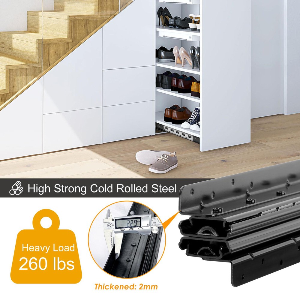 Store category Sign Up Now ! You may also like Product Description Bullet Points: Wonderful Resilience: Constructed from high-density, high-strength 2mm thick cold-rolled steel, these drawer slides boast wonderful durability. The industrial-grade solid steel balls provide heavy load capacity, ensuring a long service life for any heavy-duty industrial application. Smooth and Silent Operating: Treated with electrophoretic coating to resist rust and minimize friction, our heavy duty drawer slides are equipped with industrial-grade steel balls for a silent and smoother sliding experience. Featuring excellent load-bearing capacity, these slides are made of solid steel for lasting durability. Effortless Accessibility: With full-extension, these heavy duty drawer slides allow you to efficiently expand your storage space, providing ample room to screw in stairs during installation and access items easily on a daily basis. Effortless Glide: By adding 12 more steel balls on the same track length, our heavy-duty drawer slides enable gently sliding and labor-saving operating. The anti-collision silencers prevent sticking and noise when opening or closing, making it a strong and stable product. Versatile Mounting: Our heavy-duty drawer slides provide enhanced stability and support for any tall and heavy cabinet, making them ideal for bottom mounting in sundry cabinets, wine cabinets, stair cabinets, and storage units. Don't compromise on stability. Our bottom mounted drawer slides are made of high-density, high-strength 2mm thick cold-rolled steel. They improve the load-bearing capacity of the slide and can be extended efficiently. Our slides are more labor-saving and perfect for your storage cabinets. Specifications: Product name: Heavy Duty Drawer Slides (screws included) Product size: 600/800/1000 mm A about 600 mm/23.62 inches B about 800 mm/31.5 inches C about 1000 mm/39.37 inches Stretching range: 600-1450/800-1850/1000-2250 mm Maximum load: about 120 kg Packing quantity: 1 pair Color: Black Track width: about 94mm/3.7 inches Packing List: 2* Cabinet Drawer Slides Note: Due to different lighting and screen settings, the item color may be slightly different from the picture. Due to different manual measurements, please allow a 1-2cm difference in size. Payment Delivery details Terms of sales About us Feedback & DSRs Payment Before you palce an order, please kindly make sure that you have a paypal account. We accept PAYPAL payment only. Payment should be completed within 2 days after auction closed, or unpaid dispute will be filed for an closing auction. An unpaid case will be filled after 4 days. Delivery details We ship to your eBay address. Each package will be shipped to US by UPS Regular Parcel with tracking number. Please check your shipping address carefully before checkout, it can't be changed if order completed. All items will be shipped within 1-2 business day upon receipt of payment.Orders placed on weekend will be shipped within 3 days. If you do not receive your item in 7-10 business days.please contact us immediately for further assistance. We will be responsible for any damages or losses incurred in the shipping process. About us We maintain high standards of excellence FIVE STAR and strive for 100% customer satisfaction! Positive Feedback is very important to us. We hope that you contact us immediately Before you give us neutral or negative feedback, so that we can satisfactorily address your concerns. We promise to offer the lowest price and high quality produce. Our working time: From Monday to Friday(9:30 am to 18:00pm), we don't working on holidays ,hope you can understand and know that , thank you. Please always talk to us via ebay Message. We appreciate your business and look forward to growing our e-Bay sales with satisfied customers. Feedback Contact us If you have any questions, please feel free to contact with us by ebay Message during our business hours ( 9:30a.m. to 5:30 p.m.), or email us through eBay, we will try our best to help you to resolve it. For any presale or after-sale questions,please do feel free to email us! Due to the time difference, each email will be replied within 1 working day,and weekend will be delayed a bit. Feedback