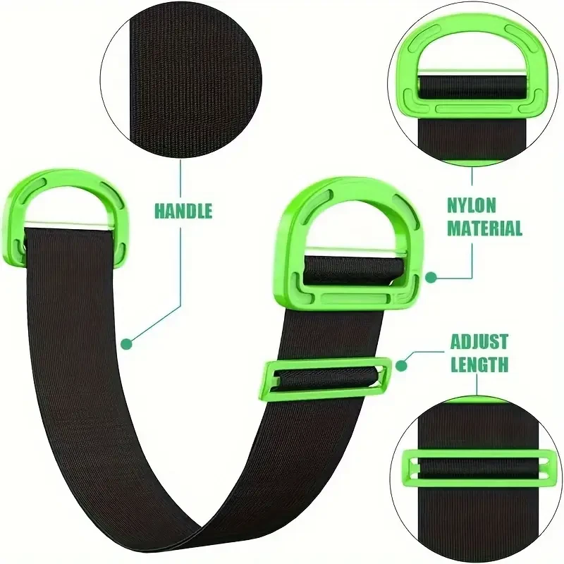 DESIGNED FOR SAFETY Developed by physical therapists , ergonomic design helps reduce the risk of injury by employing proper body mechanics and leverage to make lifting objects safer and easier . LIFTS A RANGE OF ITEMS From moving furniture , and mattresses , to carrying smaller items like firewood , mulch or boxes , It easily lifts it all. Its versatility makes it great for moving , but also perfect for working in the yard , around the house or in the office . EASY LIFTING HANDLE Unlike other lifting and moving equipment that dig into your forearm , shoulder or back , this strap provides the function and convenience of handles to any object , making your move faster and smoother . ONE OR TWO PERSON LIFT There's no need for a dolly , hand truck , a complicated harness , or uncomfortable straps . I t can be used by one person or two people , so even when you don’t have an extra hand , you can still lift that heavy object on your own. Packaging may vary.