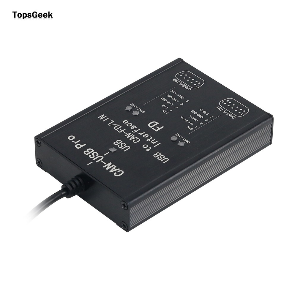 Description PCAN-USB Pro PCAN FD PRO 12Mbit/s USB to CAN Adapter 2CH CAN FD Compatible with IPEH-004061 for PEAK Description: PCAN-USB Pro, a dual-channel CAN FD adapter, connects CAN FD and CAN networks to a PC via USB. New CAN FD standard (CAN with Flexible Data Rate) is characterized by higher data transmission bandwidth. Each CAN FD frame has a maximum of 64 bits of data (instead of the current 8 bits) and can be transmitted at a bit rate of up to 12Mbit/s. CAN FD is backward compatible with CAN 2.0 A/B standard, so CAN FD nodes can be used in existing CAN networks. Features: - Provides two CAN FD channels - Supports USB: Full speed mode. Compatible with USB 1.1, USB 2.0 and USB 3.0 - Supports high-speed CAN connection (ISO 11898-2) and CAN FD (supports ISO and non-ISO switching) - Supports bit rate adjustment: 25Kbit/s~12Mbit/s - Timestamp resolution is about 1us - Compatible with CAN 2.0A (11-bit ID) and 2.0B (29-bit ID) - CAN bus connection via 9-pin D-Sub connector (CiA 303-1 compliant) - CAN galvanic isolation up to 1500V - Supports bus load measurement, error frame detection and bus status monitoring - Supports for Linux system. The kernel for Linux integrates driver (Socket CAN) - Supports for MacOS (Mac CAN) Premium Materials: - High-end FPGA solutions: the pursuit of superior performance, regardless of the cost - Alloy shell: high-end brushed finish - High quality USB cable with magnetic ring - Solid gold-plated DB9 connector - Imported high-end FPGA main chip for Lattice Semiconductor - Cutting-edge design solutions - Higher working rates Professional Automotive Bus Development Tool: 1. For PCAN-Explorer: Professional Windows software for communication with CAN bus. 2. For PCAN-Trace: It enables CAN messages to be quickly recorded and even played back on the CAN bus. 3. For BusMaster & TSMaster: It supports for ETAS and TOSUN bus development and simulation software (installation package provided). Standard Industry Software Programming Interface: 1. PCAN-Basic provides more features and extended language support. It offers a variety of features for developers under C++, C#, C++/CLR, Delphi, VB.NET, Java and Python 3.x. 2. For Linux operating systems: Many Linux distributions or Linux kernels already include drivers for PEAK-System CAN interface. CAN bus can be accessed as a network device through the SocketCAN framework. 3. For MacOS operating system: PCAN-USB library program and monitoring software for MacOS are provided, and CAN can be accessed through this product under MacOs. 4. For Labview: Provide sub-VI interface and example VI of Labview that supports PCAN devices. Supports a Wide Range of Industry Applications and Software: Diesel/natural gas - commercial engine services - For Cummins Insite: Provides RP1210 driver for PCAN. Support for Cummins ECU diagnostics - flashing. - For INCA: provides XCP and CCP protocol drivers for PCAN. It can support for INCA ECU diagnosis-flashing. - For Woodward: OH6 gas ECU diagnostics - flashing (only for Win10). Package Included: - 1 x USB to CAN adapter - 1 x DB9 terminal Block Adapter - 1 x QR code for information - 1 x Flat-blade screwdriver - 1 x DB9 terminal resistor (120Ω) Packaging Details: - G.W.: 0.6kg Payment Terms 1. We accept PayPal,Payoneer,Visa Card,Google pay,Credit card etc. 2. We ship to your eBay or Paypal address. Please make sure your eBay and Paypal address is correct before you pay. Shipping Terms 1. We will process the order within the handling time ,if you have any questions, please contact us via eBay message or email. 2. For remote regions of DHL/FedEx..., extra shipping costs might be charged. Usually it costs about 30USD-50USD. We will contact you if shipping company informed us your address belongs to remote area. Thanks for your understanding. Return Terms If you receive the item that not satisfied or defective, please do not open case and kindly notify us within 30 days. We will guide you the returning process for replacement or refund. Custom Duties & Taxes 1. It is buyer's responsibility to cover the import duties, taxes.We do not charge any taxes and fees, and the possible taxes and fees will be collected by the platform or by third parties such as customs and carriers. 2. Please check with your country's customs office and inform us what/how much should declare before shipping. Feedback 1. Please kindly leave us a positive feedback and 5 star DSR if you satisfied with our product and service. Please feel free to contact us firstly if you have any problem with your order, we are responsible and credible seller and will solve the issue it for you asap. 2. If you are dissatisfied for any reason, please don't be quick to leave us neutral or negative feedback. We work hard to make sure EVERY CUSTOMER 100% SATISFIED and resolve any problem for you and always leave positive feedback to all our customers.