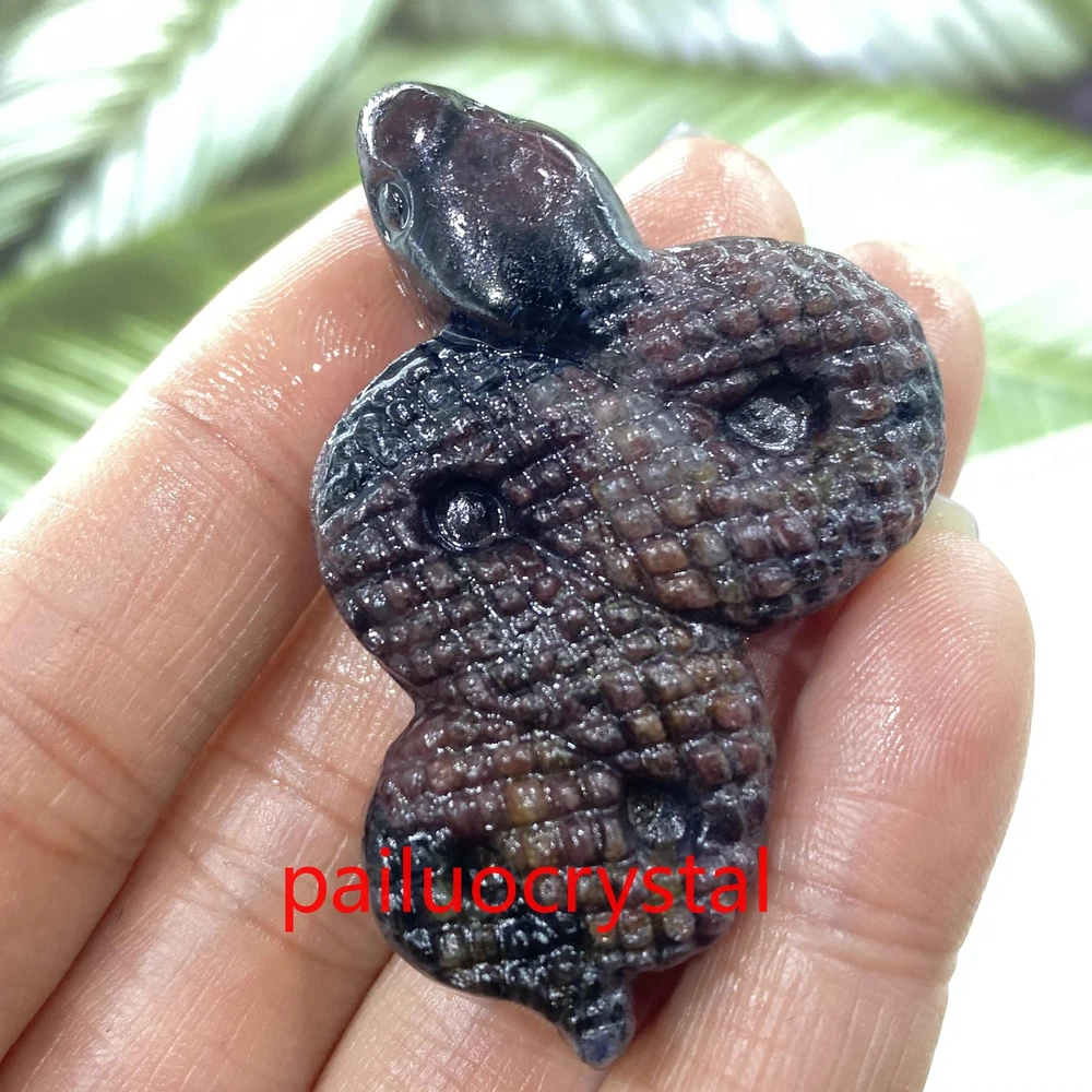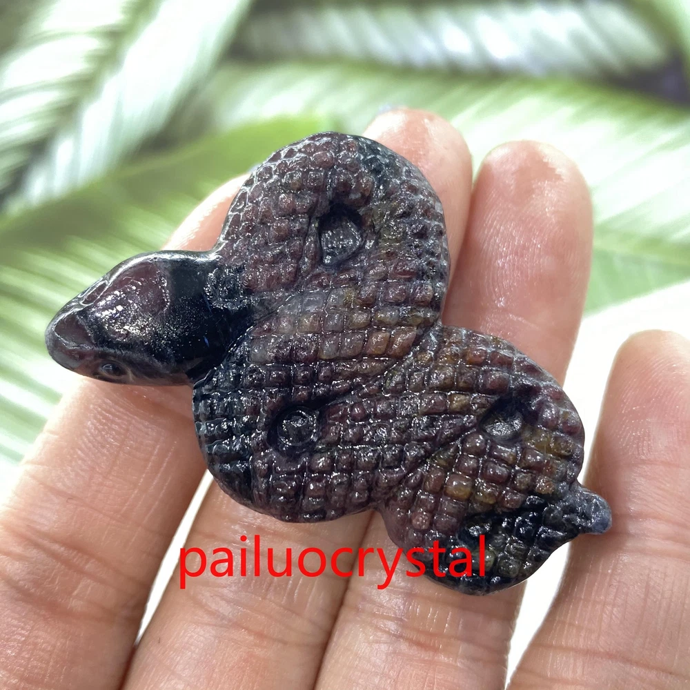 1pc Natural Garnet Snake Skull Quartz Crystal Skull Carved Figurines Healing 2"