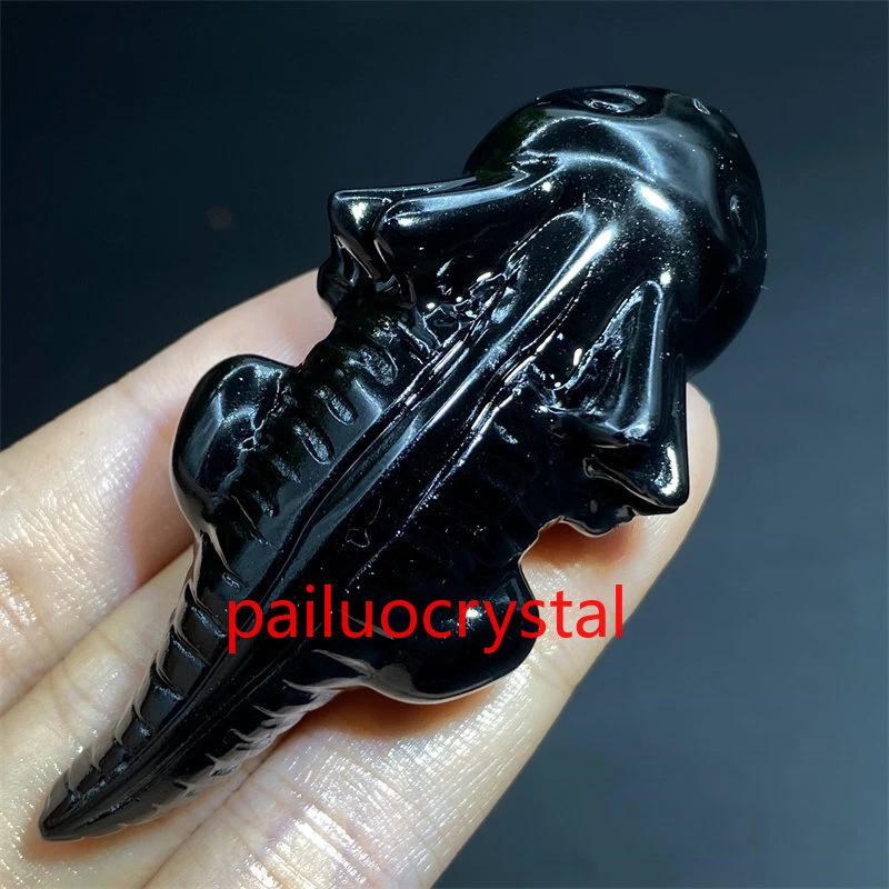 1pc Natural Obsidian Salamander Quartz Crystal Carved Skull Figurines Reiki 2.5"