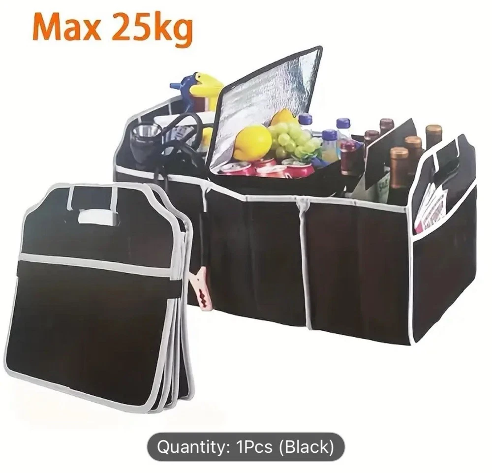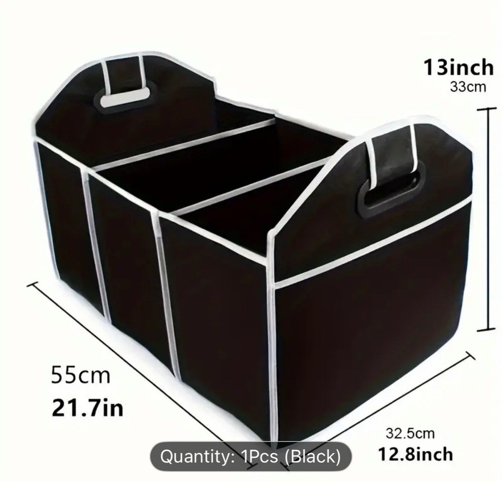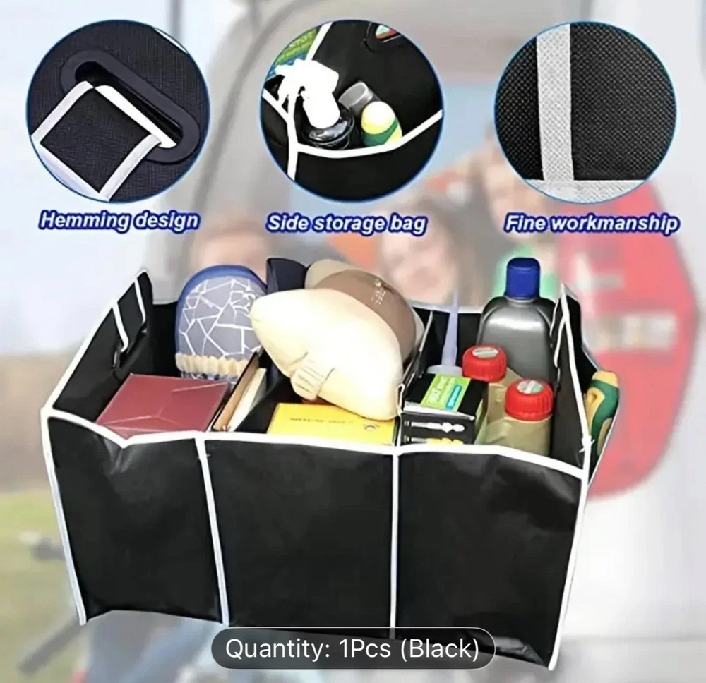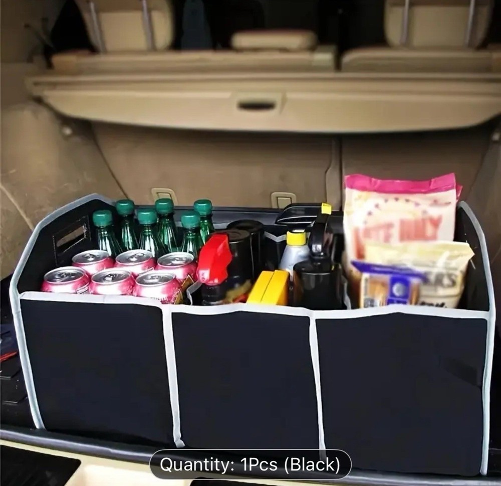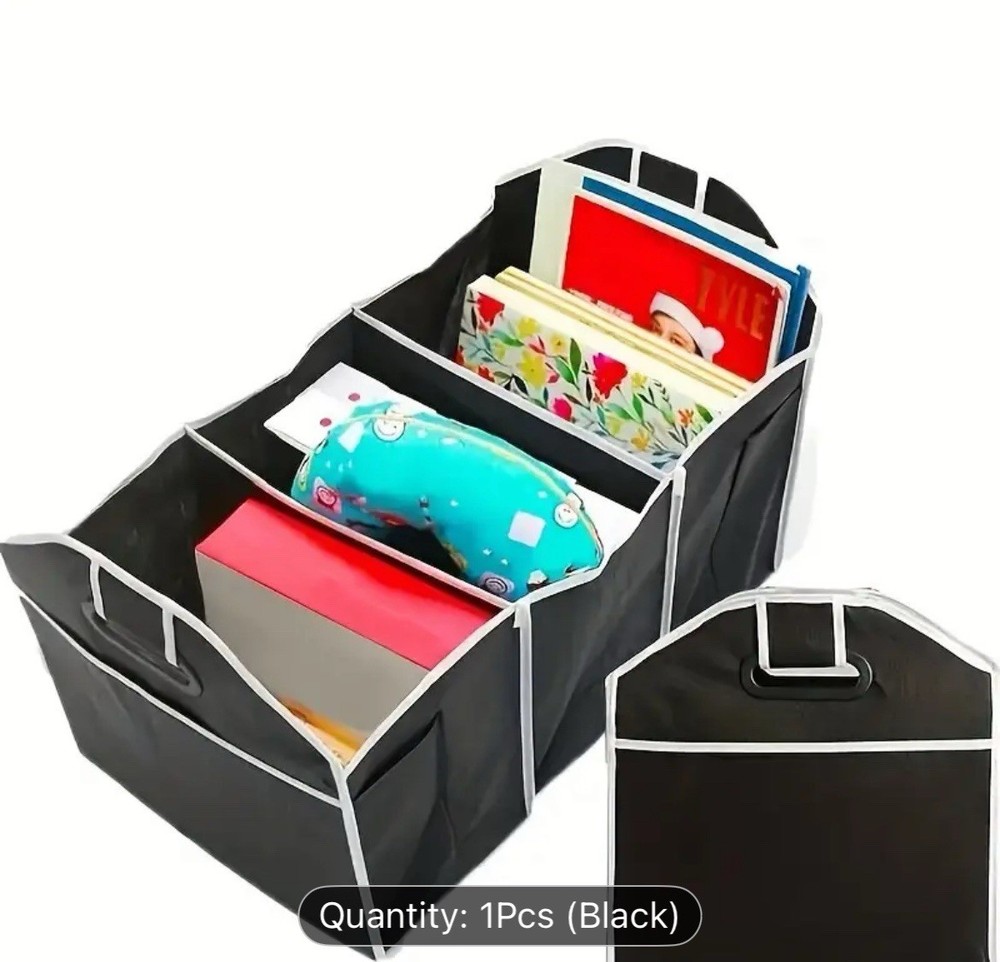 This car trunk organizer is a game-changer! It keeps everything neatly in place, and the waterproof material is a huge plus. Folds up easily when not in use, and the sleek black design blends perfectly. Super sturdy and spacious—no more messy trunk chaos. Highly recommend for road trips or daily errands!