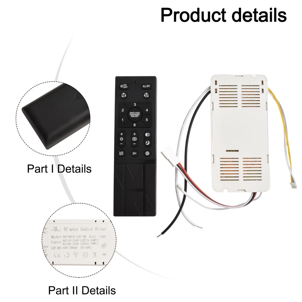 1pcs New Ceiling Fan Light Remote Control Dimmable Controller Driver Accessories DESCRIPTION Features: Features: * Variable Frequency Control: This remote control for ceiling fan light allows for variable frequency control, giving you the flexibility to adjust the fan speed to your preference. * 6 Speed Settings: With 6 different fan speed settings, this remote control provides you with a range of options for comfortable airflow throughout the year and in any room size. * Battery Monitoring: Equipped with a battery monitoring function, this remote control alerts you when the batteries need to be replaced, effective control of the fan. * Convenient Reset: Resetting the remote control to factory settings can be done easily. Simply turn on the power and hold it for 2 hours until you hear a beep, indicating successful code clearance. (Note: The fan's wall switch may need to be turned on for effective control) * Applicable to: bedroom fan light, FOR Hongyun fan, etc. *Note: When using for the first time, the remote control needs to be matched with the receiver inside before it can be remotely controlled How to pair the XH bedroom remote control: Turn off the power on the wall, turn it on again, press and hold the middle round button "PAIR CODE/FAN OFF" for 5 seconds, the receiver will beep twice, and pairing is successful! Specifications: *Part Name:Ceiling Fan Light Remote Control Kit *Material:PC *Size: as shown in the picture * Color: as shown in the picture * Voltage: AC 110V-265V * Output Voltage: 24V Package Content: 1*Ceiling Fan Light Remote Control Note: 1. The real color of the item may be slightly different from the pictures shown on website caused by many factors such as brightness of your monitor and light brightness. 2. Please allow slight manual measurement deviation for the data. POLICES Shipping Payment WARRANTY We only ship to confirmed ebay Order addresses. Please comfirm that your Order address is in line with your shipping address. Please kindly note that the c ombined shipping is not provided because the shipping fee is calculated by weight. Also, the each additional item means exactly the the same color and size. It takes about 7 -15 working days to US; about 10-30 working days to other countries. Transit time may be a little delayed because of the bad weather and customs inspection . If you do not receive your item within 30 working days since payment finished, please contact us immediately for further assistance. Payment must be completed within 5 days. If you have any problems about payment, please contact us via ebay message. We strive for 100% customer satisfaction! Positive Feedback is very important to us. If you have any questions, p lease feel free to contact us via "Ask seller a question" . We will reply your email within 24 working hours.
