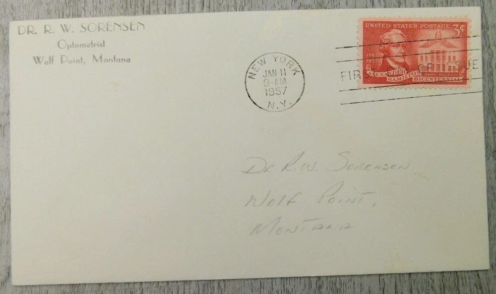 1st Day Issue New York 1957 Alexander Hamilton Bicentennial Stamp Envelope Cover