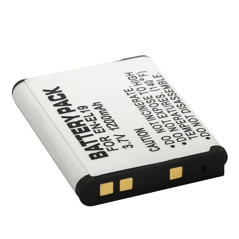Product Description: Battery Capacity: 1200mAh Battery Voltage: 3.7V Battery Model: EN-EL19 Battery Type: Li-ion Compatible Camera Models: For Nikon Coolpix W150 W100 Coolpix S100 Coolpix S2500 S2600 S2700 S2750 S2800 Coolpix S32 S33 S3100 S3200 S3300 S3400 S3500 S3600 S3700 Coolpix S4100 S4150 S4200 S4300 S4400 Coolpix S5200 S5300 Coolpix S6400 S6500 S6600 S6700 S6800 S6900 Coolpix S7000 Sony NP-BJ1 DSC-RX0 Feature: 1. 100% Brand new and high quality. 2. product match the description. 3. High Energy Density, Extra Long Life, Memory Free. 4. High capacity / rechargeable Li-ion battery with premium cell. 5. Extra power for your digital video camera / camcorder. The duration of the shooting is not inferior to the original. 6.Overheat protection and overcharge protection.