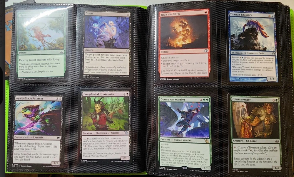 1x Filled 4-pocket [160 cards] MTG UGLY BINDER INSANE CARDS NM/LP [ID: PT5] Make sure here you don't "judge a book by its cover!" There are some cool cards inside this worn shell. Every slot filled with a card. Cards are clean, generally unplayed (pack fresh) in NM and LP condition. A rare damaged or MP/HP may slip past us and be included: check our reviews to see if this is a common occurrence. We strive for all cards to be NM/LP. Sales final, no returns. Thanks and let me know of any questions. FEEDBACK: Think we can do something better? Please let us know and share your comments with us. Thanks for stopping by! Rock Fortress Trading Binder ID: PT5