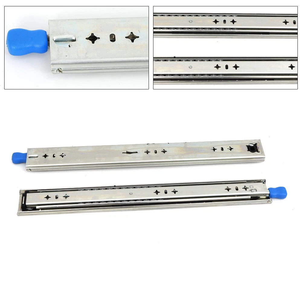 Specification: Colour: Silver Type: Heavy slides Material: high quality cold rolled sheet Bearing capacity: 120KG Surface treatment: blue zinc, electrophoretic black Installation Form: Drawer Side Installation Package Included: 1 Pair Heavy Slide (excluding mounting brackets and screws) 2* 18/22/28/32" Heavy-duty Slide Rail Drawer Smooth Sliding with Lock 120KG Welcome to our store~ 1 Pair Full Extension Ball Bearing Drawer Slides Mount 18"-40" This is a new heavy-duty lock slide rail with good stability, small swing, smooth sliding, easy to use, suitable for all kinds of cupboard, tool cabinets and other large equipment, is the furniture industry, caravan and industrial field of high-quality choice. Specification: Colour: Silver Type: Heavy slides Material: high quality cold rolled sheet Bearing capacity: 120KG Surface treatment: blue zinc, electrophoretic black Installation Form: Drawer Side Installation Specifications :18"(450mm),20"(500mm),22"(550mm),24”(600mm),26”(650mm),28"(700mm),30”(750mm),32" (800mm),34”(850mm),36”(900mm),38”(950mm),40”(1000mm). Origin Length : 17.7 ", 19.6”,21.6", 23.6”,25.6”,27.5”,29.5”, 31.4",33.5”,35.4”,37.4”,39.3”. Extended Length : 35.4”,39.3”, 43.3",47.2”, 51.7”,55.1",59.1”,62.9",66.8”,70.8”,74.7”,78.7”. Highlights: 1. The surface is coated with high density zinc metal, which can effectively prevent the corrosion of the product surface and prolong the service life of the product. 2. Anti-skid rubber pad, increase friction, put back track colloidal fall and open automatically after closing. 3. Anti-skid device with lock, suitable for heavy industrial equipment. 4. Solid steel ball, check can bear 120 KG (the longer the pull out, the smaller the load). 5. Three-section track design, effective load-bearing, precise contraction. Package Included: 1 Pair Heavy Slide (excluding mounting brackets and screws) Note: -Due to different producing batches, product Specifications might be a little different. If you minding the difference, please buy it carefully. -Please allow 1-3MM differs due to manual measurement. -Due to the different display and different light, the picture may not reflect the actual color of the item. Thanks for your understanding. In consideration of safety, after the drawer is loaded, it will be dangerous to separate, so the heavy-duty slide rails cannot be separated. Payment Delivery details Terms of sales About us Contact us Payment We accept ebay payment 。 Fees such as import duties, taxes are not included in the item price or shipping costs. These charges are the buyer's responsibility. Delivery details Shipping: 2-9 working days to: USA Terms of sales We maintain high standards of excellence and strive for hundred percent customer satisfaction. Feedback is very important to us. We hope that you contact us immediately before you give neutral or negative feedback, so that we can address your concerns. It is impossible to address issues if we do not know about them! About us Your satis faction is our ultimate goal. We work hard to earn your trust and future business. Our certified technicians have tested each item before shipping. The unit comes with 1 year limited warranty on all manufacturing defects. a) If you receive a defective item, you may return it or ask for a discount. Please contact us within 14 days after you receive the package. b) What you returned must be intact and in its original packaging as re? u. Customer is responsible for shipping costs of the returned item. c) We will cover the cost of shipping back t with the shipping rate indicated in the registration page. We will send you a new unit or refund the full payment you paid. Thank you. Contact us Business Hour Business Hour: Monday To Friday: 8:30 AM to 5:00 PM (Beijing China time) Due to time zones, our reply to your questions may not be immediately. But within above working time, we will reply your email within 24 hours. If it's non-workdays, please kindly be patient and wait till Monday. Please contact us with ebay message. Please feel free to contact us if you have any questions. Monday To Friday: 8:30 AM to 5:00 PM (Beijing China time) Due to time zones, our reply to your questions may not be immediately. But within above working time, we will reply your email within 24 hours. If it's non-workdays, please kindly be patient and wait till Monday. Please contact us with ebay message. Please feel free to contact us if you have any questions. Features Made of high quality material, Durable, stable performance, Fast shipping Warranty 3-year warranty ❤Highlights❤ ❤Durable Material❤,❤Beautiful Appearance❤,❤Creative Design❤ ★Features★ ★★★Good Quality Guarantee★★★Long Service Life★★★ 🔥Feature🔥 🔥High Performance🔥Reliable Quality🔥Good Stability🔥 Highlights Sturdy and Durable,Long Service Life 国内运输 Standard Shipping Type Heavy slides Brand Unbranded MPN Does Not Apply Material high quality cold rolled sheet Color Silver Bearing capacity 120KG Surface treatment blue zinc, electrophoretic black Installation Form Drawer Side Installation Item Width N/A Item Height N/A Item Length N/A