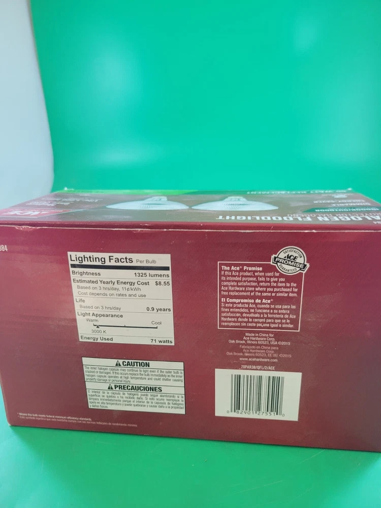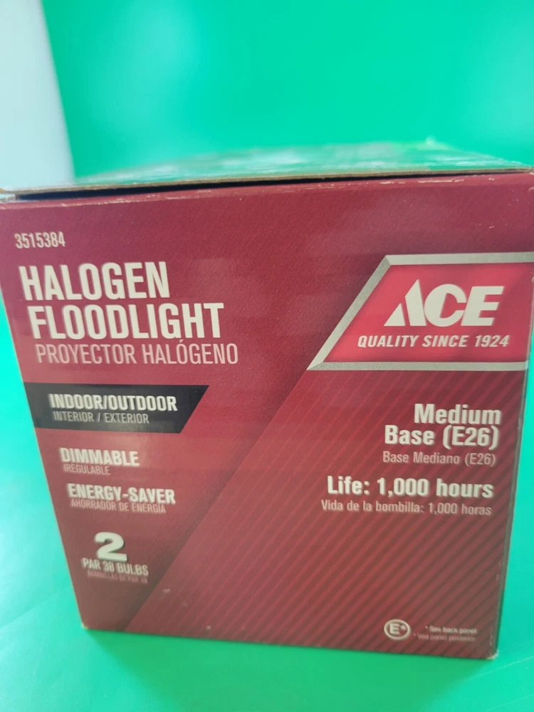 Illuminate your indoor and outdoor space with this top-of-the-line ACE halogen floodlight. With 90 watts of power, this floodlight provides 1325 lumens of bright light, making it perfect for enhancing your home's security and outdoor ambiance. The PAR38 bulb shape code ensures a wide and even distribution of light, while the 120 V voltage makes it compatible with both indoor and outdoor installation areas. Designed for ease of use, this floodlight features a simple installation process and is perfect for outdoor lighting in your yard, garden, or other outdoor living spaces. With two lights included, you can rest assured that your home and outdoor area will be well-lit and secure. Upgrade your home's lighting technology with this high-quality ACE halogen floodlight today! Our merchandise has been generously donated by the friends and families of Community Mainstreaming Associates (CMA). All proceeds from the sale of this item benefit CMA, a 501c3 charity supporting adults with intellectual and developmental disabilities. Thank you for your support.