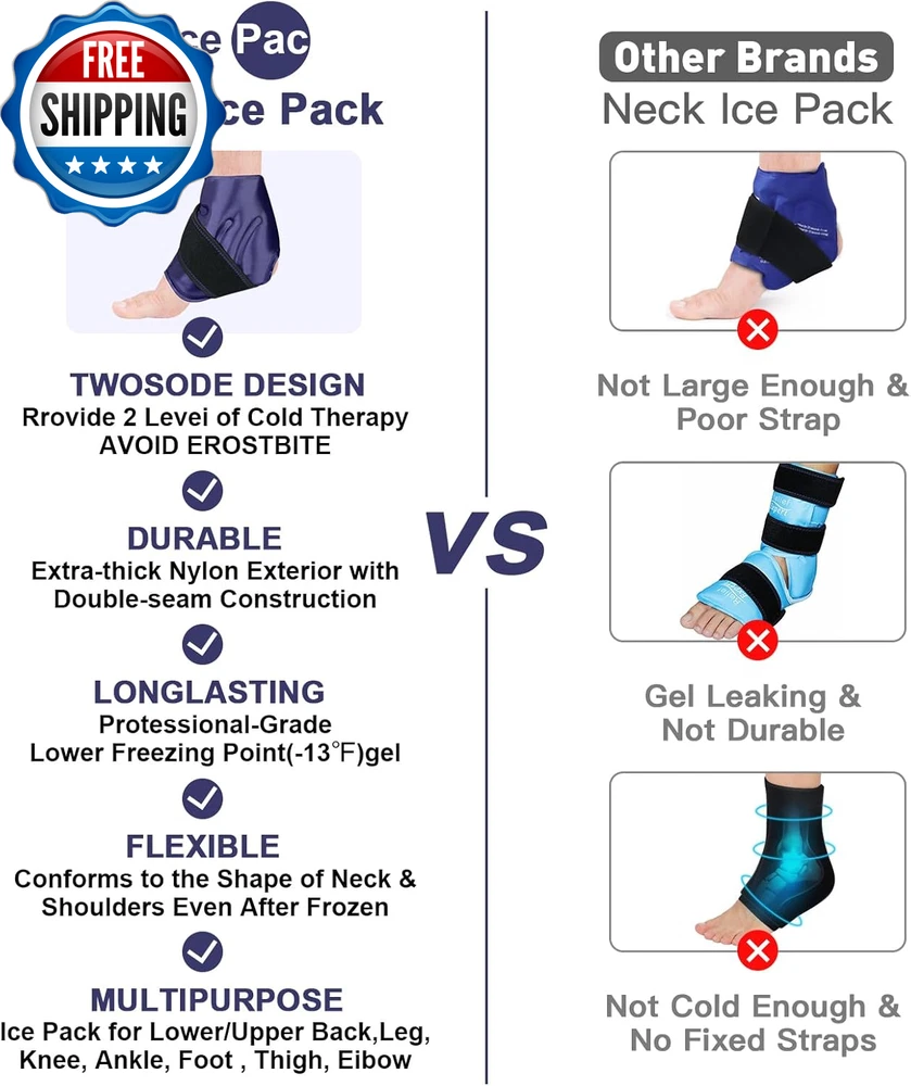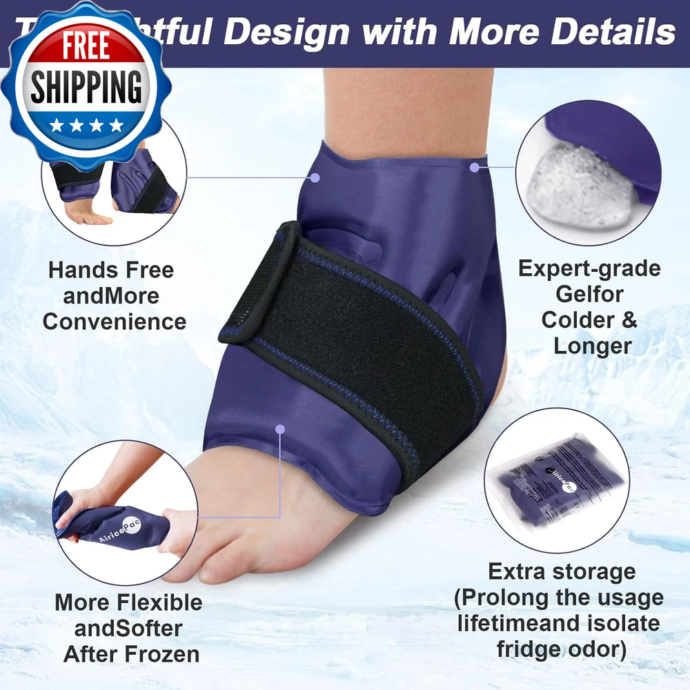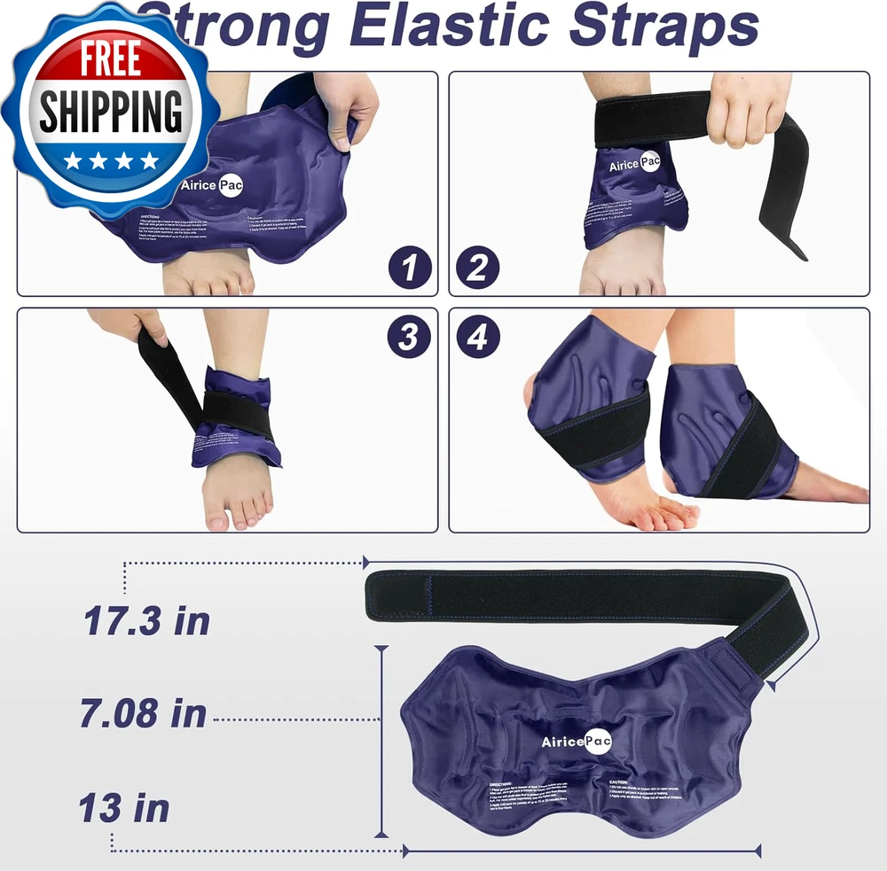 2 Ankle Ice Pack Wrap for Swelling, Ice Pack for Ankle Injuries Reusable, Cold Compress Therapy for Feet Pain Relief, Ankle Ice Wrap for Sprains, Achilles, Tendonitis, Plantar Fasciitis Blue Targeted Pain Relief for Ankle : Ankle Ice Wrap with 360 Coverage for fully coverage the ankle and fast soothing ankle pain and discomfort, which can effectively relieve post-workout muscle pain or post-injury swelling pain. Perfect for relieving pain from ankle injuries, swollen feet, ankle sprains, bruises and fasciitis pain, tendonitis. Dual-Fabric Design: Two different levels of coldness provided. One side of the ice ankle wrap is a super soft minky fabric, which can isolate condensation and avoid frostbite, penetrating mild coldness and using directly to the injuries areas. The other side is nylon side penetrates intense coldness. Started cold therapy with soft minky surface, then turn to the nylon side if feel the soft minky side isn't cold enough. Adjustable Fit & Hands-Free - The ankle cold pack wrap comes with elastic neoprene straps can be easily adjusted to fit most ankles, provide powerful cold compression therapy to get the optimal soothing effect on ankle pain, foot pain, heel pain hot feet and burning feet. The universal design fits right or left ankle. It can be used while sitting, lying down or standing. No Leakage & Stay Flexible - Ice wrap for ankle and foot with durable double-seal edge design prevents from gel leakage and breakage. The foot ice pack wrap plantar fasciitis with (-13℉) freezing point , always keeps pliable after freezing. Chill the ice pack ankle wrap in a plastic bag included so as to convenient use anytime. Fully Guaranteed & Fabulous Quality - Ice wrap for foot heel are made of high-quality and safe materials. AiricePac ice pack for foot is Ideal Gifts for your Loves & Friends. Please feel free to reach us if you have any problems with our feet ice pack. Product Description Unit Count 2.0 Style ANKLE 2 PACK BLUE Color Blue Product Dimensions 9.45 x 11.42 x 1.57 inches; 1.3 Pounds Use for Wrist, Ankle, Heel, Feet, Foot Age Range (Description) Adult Specific Uses For Product Tendinitis Shipping Fast shipping is very important for us. Our standard US shipping service is FREE. Your order will be shipped within 2-3 business days upon full payment received. Your order will be delivered within 2-3 business days after the handling time. We only ship to the confirmed PayPal address. We reserve the right to cancel any order for any reason at any time. We are not responsible for undeliverable addresses. Returns and payment We offer a 30 days return policy from checkout winning date. We allow only PayPal as payment method FeedBack Your feedback very important to us, after you get your package and you are satisfied with our service please leave us positive feedback If you have any problem with your order / any questions please before leave any type of feedback Please visit our eBay store to check out other items for sale! Thank you for shopping at our store.