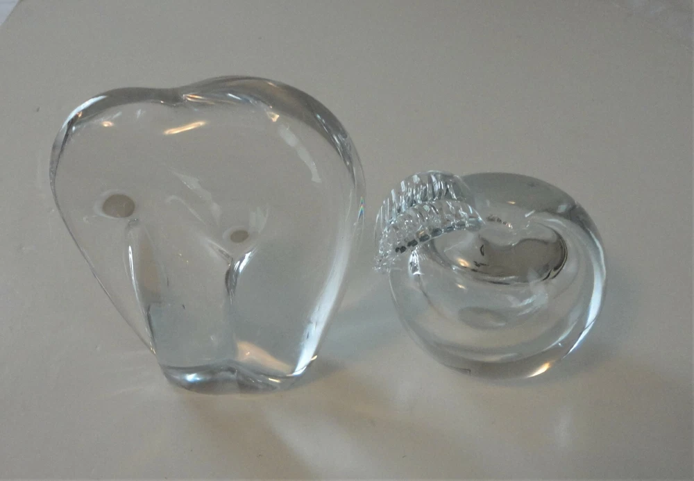 For sale are the 2 art glass paperweights shown in the listing photos. The modern/abstract elephant measures ~ 4.5" X 4" X 1.5" and the apple measures ~ 3" X 3". Neither piece is marked. Please read the detailed Condition description section , examine the photos and ask any questions before bidding. The buyer is responsible for all shipping charges. Buyers residing outside the United States please note that the shipping charges do not include any applicable VAT or excise fees.