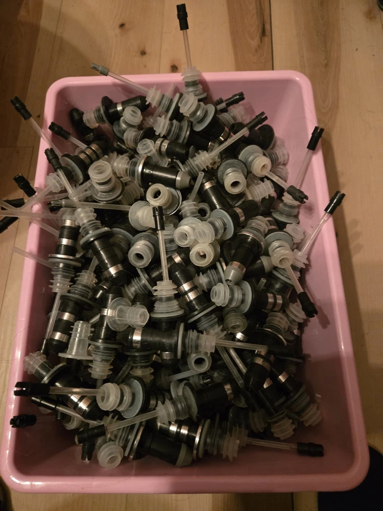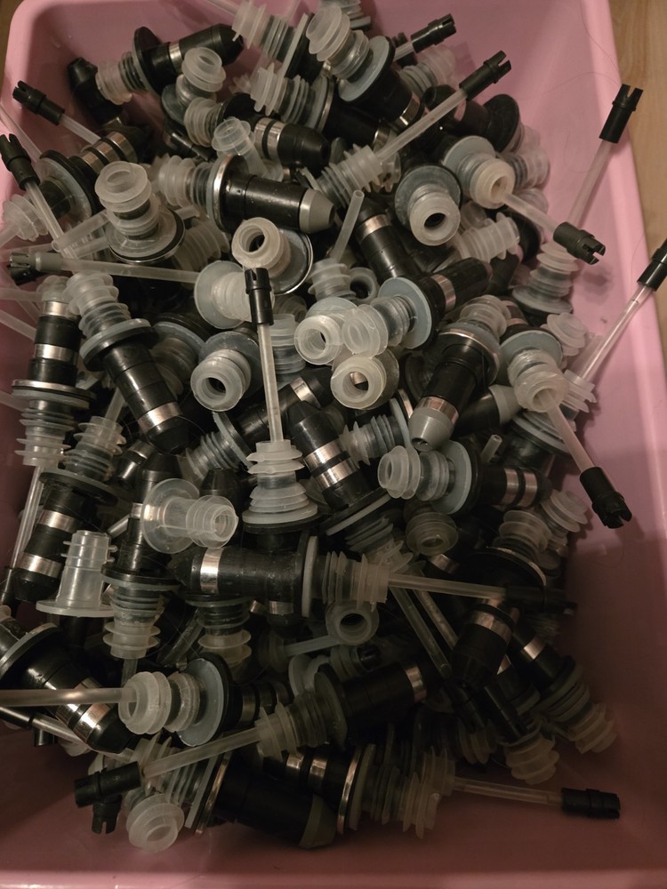 The BERG All-Bottle 1544 Electronic Programmable Bottle Stopper Set is a versatile and convenient tool for restaurants and bars. This set includes multiple stoppers in black and clear colors, made from a combination of plastic and metal materials. The electronic programmable feature allows for easy customization and efficient use, making it a practical addition to any kitchen or dining establishment. Perfect for sealing and preserving bottles with ease, the All-Bottle 1544 set from BERG is a reliable and user-friendly solution for any commercial kitchen. there is two berg systems 1544 all bottles both in working condition, 1 does not have a power supply but is an easy fix , both tested and comes with 180+ berg ring pour tops, this is all one Bundle package deal , would be great for portable bars, and saves 1000s in over pouring , you can select how much liquor you want to pour out and there is all different size tops ,if you want to use pos tracking , but can use with out programs at a portable bar!! I rang in millions with this system and saved the restaurant bar 10s of thousands in exact pour technology.. only 1 power source .