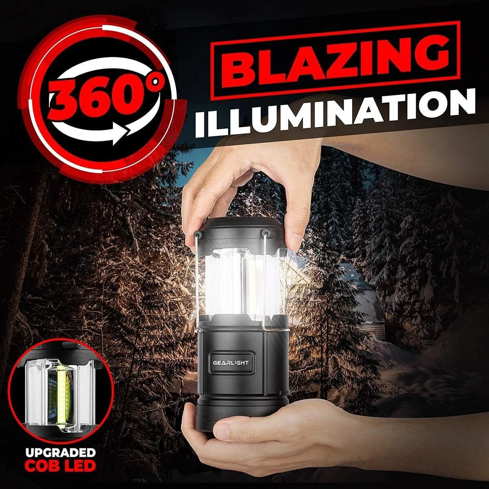 SUPER BRIGHT - Powered by COB LED, the Sunlit battery operated lamp is the next best thing to actual daylight. The LED lantern offers 360 degrees of light to effortlessly illuminate any outdoor space. EASY TO USE - Each battery operated lantern comes with a foldable hook and strong magnetic base, so you can create overhead or stationary lighting in a tent, garage, back of a truck, and other places. COMPACT & LIGHTWEIGHT - These lanterns come with a collapsible design making them extremely portable and easy to transport on any camping our outdoor adventure VALUE - Every Sunlit battery powered lantern pack has everything you need to be prepared for the unexpected. It includes (2) camping lanterns, (6) AA batteries for hours of use, and (1) user manual. VERSATILE - Measuring 5.125 x 3.375 x 3.375 inches, this medium-sized camp lantern can also be used as an emergency light during a power outage or hurricane, and as an everyday lantern around the home. Product Description Add to Cart Add to Cart Add to Cart Add to Cart Customer Reviews 4.7 out of 5 stars 7,202 4.6 out of 5 stars 79,751 4.6 out of 5 stars 42,784 4.6 out of 5 stars 27,885 Price $19.98 $ 19 . 98 $19.99 $ 19 . 99 $19.99 $ 19 . 99 $24.99 $ 24 . 99 Usage Everyday, Emergencies, Camping Everyday Carry Hands-Free Powerful Illumination Features Ultra Bright, Long Lasting, 360* Illumination, Strong Magnets, Hooks Multiple Modes, High Lumen, Zoomable Multiple Modes, 45° Vertical Adjustment, Washable Headband Multiple Modes, Very High Lumen, Zoomable Size Medium Compact Compact Medium Batteries 3x AA (batteries included) 3x AAA (not included) or 1x 18650 (not included) 3x AAA (not included) 4x AA (not included) Material Water Resistant ABS High Grade Anodized Aluminum Water Resistant ABS High Grade Anodized Aluminum
