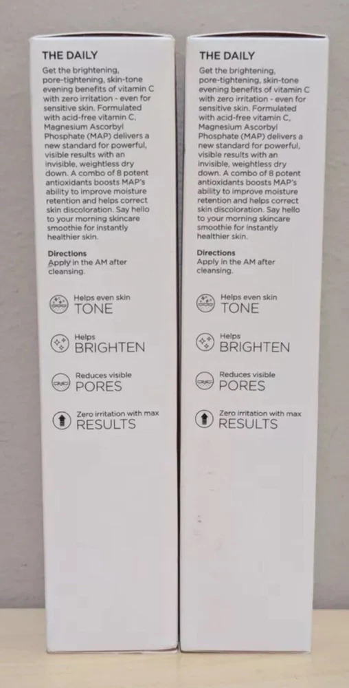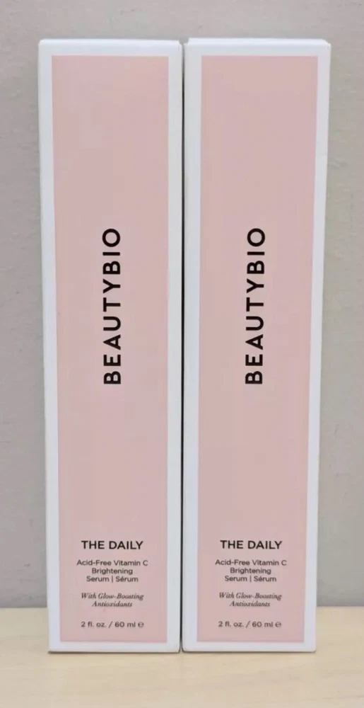 2 BeautyBio The Daily Acid-Free Vitamin C Brightening Serum 2 oz EACH SEALED BOX. Description The Daily Vitamin C Serum helps moisturize skin. It contains a proprietary complex (magnesium ascorbyl phosphate, alchemilla vulgaris, malva sylvestris, peppermint extract, and veronica officinalis extract) uva-ursi extract, yarrow flowering plant extract, and other key ingredients. How do I use it: The Serum is to be used after cleansing and patting the skin dry. Apply one to two pumps evenly all over the face, followed by a moisturizer of choice. From BeautyBio.