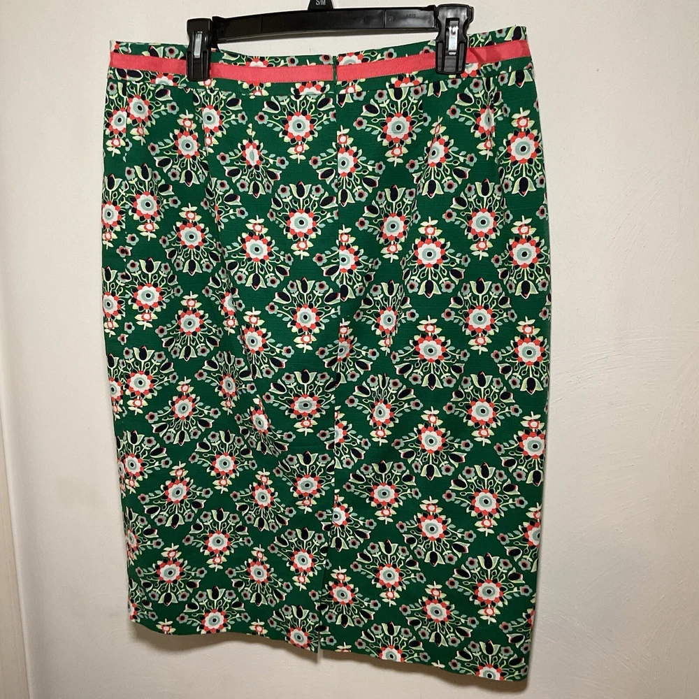 The Boden Professional Pencil Skirts in blue and then in green floral are stylish and versatile addition to any woman's wardrobe. Made from a comfortable cotton blend material, the skirts features a floral pattern and a ribbon accent for added flair. The knee-length straight and pencil style is perfect for various occasions, from casual outings to business meetings. The skirts are machine washable and suitable for all seasons, making them practical and fashionable choices for any size 12 woman looking for vibrant and classic pieces.