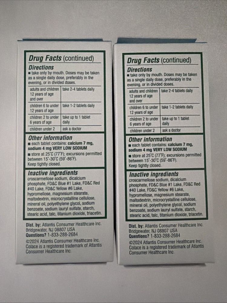 (2) Colace Docusate 2-IN-1 Stool Softener + Laxative 60ct Exp 2027+.