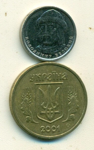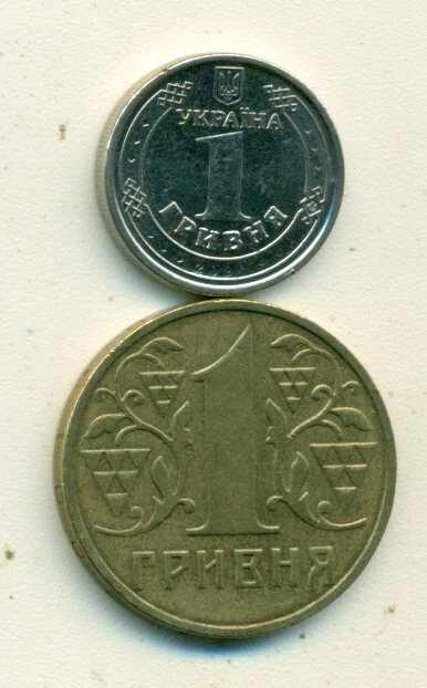 2 DIFFERENT 1 HRYVNIA COINS from UKRAINE DATING 2001 & 2020 (2 DIFFERENT TYPES)