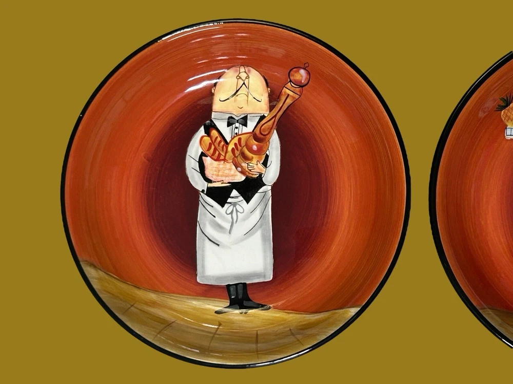 2 Dinner Is Served Bistro Waiter 9.5” Bowl Set By Certified International This set of plates might make you feel like you've hired a personal chef with their charming waiter designs. Whether serving up a gourmet meal or pizza night, these plates are here to add a dash of humor to your dining table. They're durable, microwave-safe, and dishwasher-safe. • 9.5" Diameter, 2" high • Dishwasher & Microwave Safe • Hand-Painted Ceramic • Made In China • Set Of 2 Plates • Playful Waiter Design Condition: Pre-owned, good. Light surface wear. No chips or cracks. PRE-owned, as-is, please zoom in to pictures for details of condition. Pictures are part of the detailed description. We only do returns/refunds on items purchased that are not as described and shown in photos and/or damaged in shipping. Please feel free to ask any questions before purchase and let us know if something is wrong with this listing! Shipping: Friday-Sunday purchases ship Monday Monday-Tuesday purchases ship Wednesday Wednesday-Thursday purchases ship Friday We usually ship USPS Ground Advantage or Fedex with Larger packages. Most of our shipping fees are at fixed rates. We apply averages based on calculated shipping costs given to us by ebay. Some zip codes cost us more and some less. So we pick a middle number. On large and heavy packages we may do calculated shipping which may show the cost very high for some people living on the west coast/Alaska for example. If you send us a message and your cost is outrageous based on our actual shipping cost, we don't mind refunding the difference in actual shipping/packaging costs. We wish there was a perfect way to charge on shipping, but there is not. Thanks for looking! Pops AA054 L/24