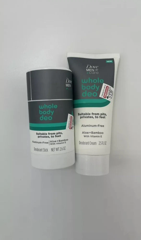 (2) Dove Men + Care Whole Body Deo Deodorant Stick & Cream- Aloe + Bamboo 2.6 oz.