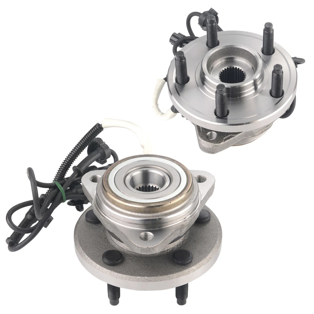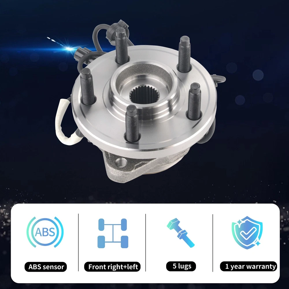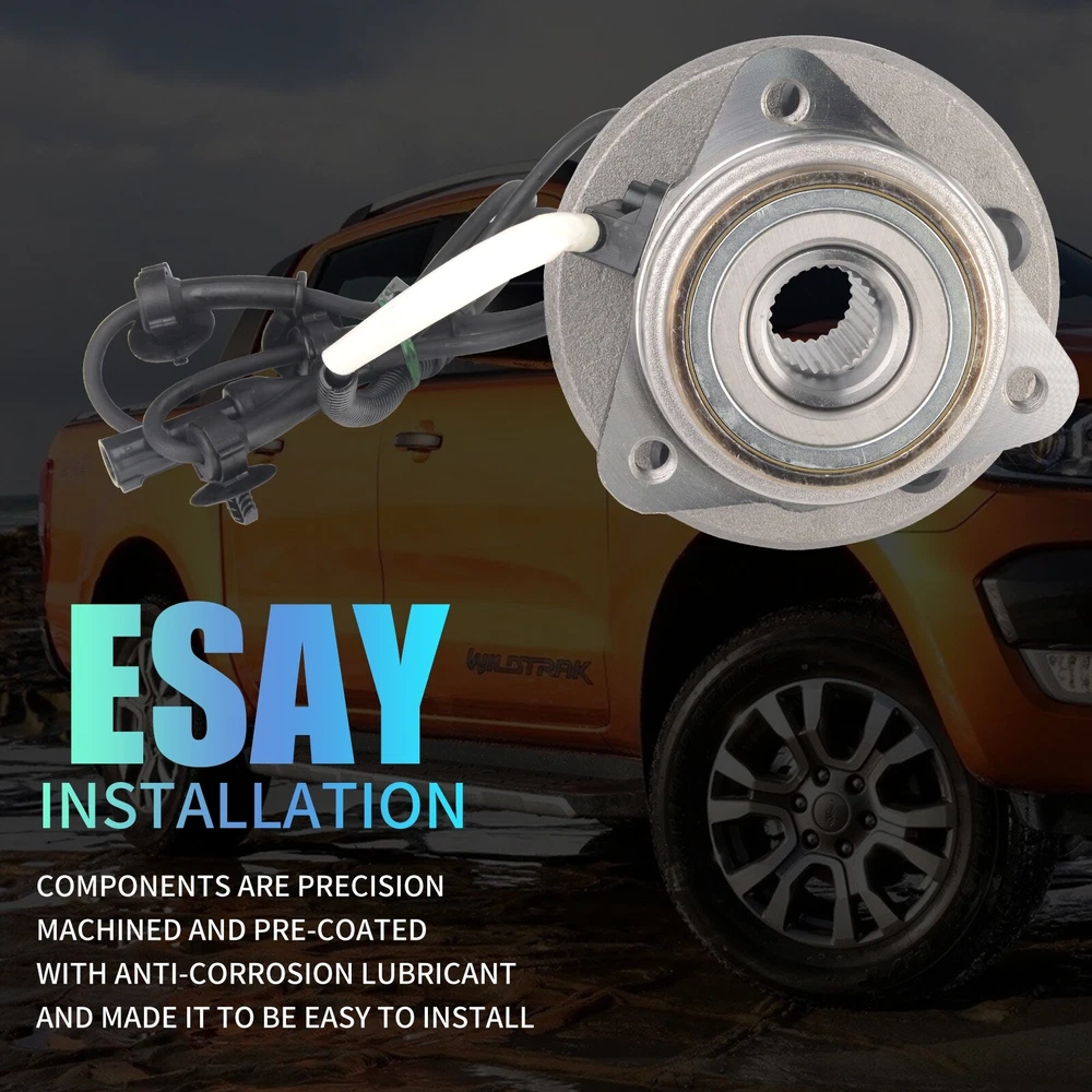 Specification OE Number: 515052 Item Weight(lbs): 9.48 Item Size(LengthxWidthxHeight:inch): 5.91x5.91x5.91 Number of Splines: 27 Knuckle Bolt Circle Diameter: 4.75 in. / 120.6 mm Lugs Included: Yes Material: Steel Finish: Polished,Rust Protected Type: Ball Bearing Wheel Stud Quantity: 5 Flange Shape: Triangular Hardware Included: No Hub Pilot Diameter: 3.94 in. C-Clip Included: No Fitment Type: Direct Replacement Knuckle Bolt Hole Size: M12*1.75 Flange Bolt Hole Quantity: 3 Flange Diameter: 5.88 in. Placement on Vehicle: Front Wheel Hub Bearings Unit: 2 Package Include: 2*Front Wheel Hub Bearings Bearing Generation: G3 Anti Lock Braking System Type: Cable Anti Lock Braking System: Yes Package Dimensions(LengthxWidthxHeight:inch): 5.91x5.91x5.91 ABS Sensor Included: Yes Bolt Size: 1/2-20UNF Bolt Pattern: 5 x 4.5 in. Bolt Circle Diameter: 4.5 in. / 114.3 mm Wheel Pilot Diameter: 2.78 in. / 70.5 mm Brake Pilot Diameter: 2.83 in. Flange Offset: 2.21 in. Bolt Thread Pitch: 1/2-20UNF Package Weight(lbs): 10.58 Fitment 1995-2001 Ford Explorer 2000-2009 Ford Ranger 2001-2005 Ford Explorer Sport Trac 2001-2003 Ford Explorer Sport 2001-2002 Mazda B3000 2001-2009 Mazda B4000 2003-2009 Mazda B2300 1997-2001 Mercury Mountaineer Features & Benefits 1.Material & Qaunlity - Wheel Hub Bearing Assembly is specially quality-tested and engineered to the highest of manufacturing standards, meet or exceed OE quality. The induction-hardened raceway provides superior load-bearing capacities and service life. Worry-free of abnormal noises or faulty connection. 2.Main Function - Hub bearings can fix the tire and support the gravity of the whole body, provides precise guidance for the rotation of the hub. wheel hub bearing enables the wheels and attached components to rotate smoothly and keeps the wheel attached to the car. High quality wheel hub assembly make you enjoy your vehicle in a safe and smooth 3.Premium Features - Our wheel bearing assemblies manufactured by high-quality materials for ensuring precisely matches, durability, reliability and premium performance. The high-quality seal design provides superior anti-pollution protection, ensuring that the hub bearings are clean, long lasting and minimizing noise and vibration. Wheel bolts with protective coating that helps prevent rust and corrosion and makes it easier to disassemble and properly twist the wheel nuts 4.Easy To Installation - Assembling has excellent performance, precise overall structure, easy and quick installation 5.Corrosion Protection - Wheel hub bolts with protective coating, not easy to rust and corrode, and easier to tighten the wheel nuts. Better seal design, which lasts and minimizes noise and vibration. Each item is factory quality inspected according to OEM production standards and meets the highest standards. 6.Keeps Water And Dirt Out -- Quad lip seal design inhibits damage by keeping moisture and other contaminants out 7.Service & Warranty - I-year warranty for all Wheel Hub Bearing Assembly, well-packaged, any problems please feel free to contact us first, let's make it right!