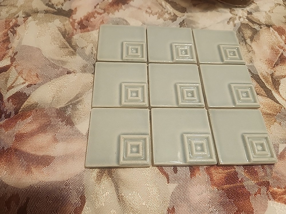 2" Green Celadon Glazed Ceramic Tiles - accent tile - inserts pieces. comes with 9 pcs.
