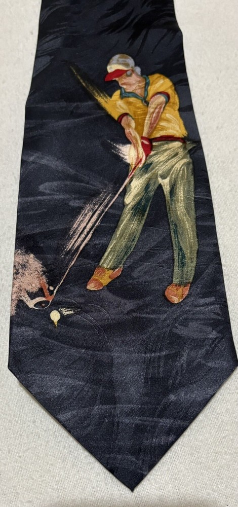 2 Golf Ties Necktie for the Golfer in your life Great Father’s Day Gift!! The blue tie with the golfer is a “Tee Shot” by Terry Rose The red one with mini golfers all over it, his Abercrombie and Fitch. I believe they are both silk.