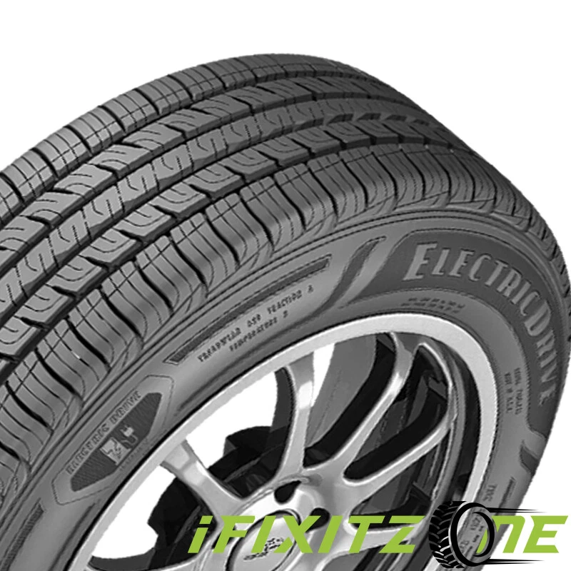 The ElectricDrive is Goodyear's Grand Touring All-Season tire developed for drivers of battery electric vehicles (BEVs) looking for a tire specially tailored to the vehicle's needs. The tire's internal construction features Goodyear's ComfortEdge sidewall technology, designed to absorb impacts while providing ultra-refined handling and steering response. It comes with a 60k mileage warranty by the manufacturer. The ElectricDrive is engineered to balance sound comfort and tread life, helping maintain low noise levels achieved in part from the BEV's quiet, electric motors, while also delivering satisfying year-round traction in dry, wet, and light snow conditions. A two-ply casing supports twin steel belts, along with a reinforcement cap ply for increased high-speed capabilities. ifixitzone