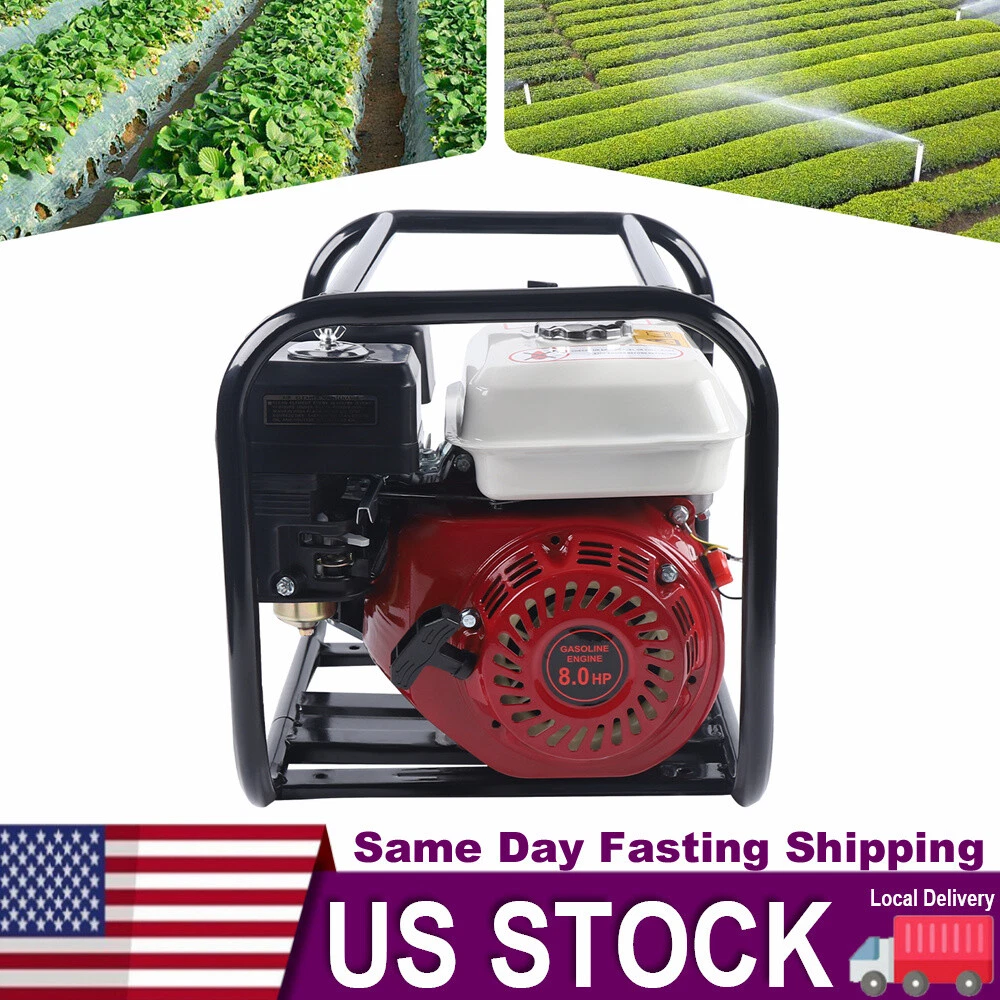 Description Are you still worried about watering your farm too slowly? This 6.5HP irrigation water pump will help you get your watering done very quickly and well. It has an aluminum pump body for greater durability and long service life. The extra power and large flow rate will allow you to work more efficiently. Key Features Great Durability: It is mainly made of high-quality aluminum and iron, and has undergone spraying and welding processes, so it has good wear resistance, corrosion resistance, high temperature resistance, and impact resistance, making it very sturdy and durable. High Efficiency: It adopts a powerful four-stroke OHV engine, which can generate more power. The 6.5hp, 210cc engine has a high speed of 3600r/min, achieving a 1271.33ft³/h hourly flow rate, 23ft self suctio 2" Inch 6.5HP Gas Water Semi Trash Pump Gas-Power Water Irrigation Transfer Pump Description Are you still worried about watering your farm too slowly? This 6.5HP irrigation water pump will help you get your watering done very quickly and well. It has an aluminum pump body for greater durability and long service life. The extra power and large flow rate will allow you to work more efficiently. Key Features Great Durability: It is mainly made of high-quality aluminum and iron, and has undergone spraying and welding processes, so it has good wear resistance, corrosion resistance, high temperature resistance, and impact resistance, making it very sturdy and durable. High Efficiency: It adopts a powerful four-stroke OHV engine, which can generate more power. The 6.5hp, 210cc engine has a high speed of 3600r/min, achieving a 1271.33ft³/h hourly flow rate, 23ft self suction height, and 92ft lift. and efficiently completing various irrigation and drainage tasks in a shorter amount of time. Long-term Endurance & Energy Saving: The 0.95gal fuel tank allows you to work for a longer time at once, saving you time and effort. A high-quality carburetor allows for better fuel combustion, ensuring a fuel consumption rate of 360ml/kw.h, and reducing fuel consumption. Good Heat Dissipation: The forced air-cooling system and the dense cooling holes in the casing dissipate heat quickly and promptly, which not only prolongs the engine's service life but also ensures that the engine will not stall even after a long period of operation. Thoughtful Design: The sturdy frame, quadrilateral base, and enlarged anti-slip pads provide greater stability and effective vibration reduction, ensuring better performance in harsh environments. Easy Operation: The design of manual start, one-click shutdown, and controllable speed simplifies various operations while ensuring safety, making it easier and more reassuring for you to use. Low Noise: The quality silencer can effectively alleviate the noise generated during the operation process, control the noise within an acceptable range(about 96dB), and provide a comfortable working environment. Protective Package: To prevent the product from being damaged and bumped during transportation, we packed it with sponges, bubble bags, plastic bags and carton to protect your products to the maximum extent possible. Customer Service: Communication is the best way to solve problems. If you have any problems, please feel free to contact us. We will reply and solve the problem for you as soon as possible. Details Enlarged Inlet and Outlet: Its inlet and outlet have been enlarged to a diameter of 2 inches, which allows for a larger flow rate for a wider range of watering and suction. Air & Water Filters: The filters can effectively isolate impurities in water and air, prevent blockage of water pipes and water pumps, and improve working efficiency. Snap-on Fuel Tank Cap : It makes the fuel tank seal better, reduces evaporation, and saves fuel. Application It can be used for agricultural irrigation, treatment of industrial wastewater, tunnel drainage, road cleaning, alpine water conveyance, flood control and drainage, engineering construction, water extraction from machine wells, fire-fighting water, fishpond aquaculture, and so on. Initiation Step Switch to "ON". Connect the inlet hose and filter. Close the damper and open the gasoline switch. Start the machine. Open the damper. Adjust the speed control seat. Water Pipe Installation Step 1. Place the gasket in the joint. 2. Rotate to install the joint and tighten it. 3. Install the water pipe clamp. 4. The installation is completed. Specifications Material: Aluminum, Iron, Plastic Process: Spray Molding, Welding Color: Red Engine Type: Single-cylinder, 4-stroke, Air-cooled Starting Mode: Manual Power: 4.8kw Horsepower: 6.5hp Fuel Type: Gasoline Fuel Tank Capacity: 3.6L/0.95Gal Fuel Consumption Rate: 360ml/kw.h Engine Oil Capacity: 0.6L/0.16Gal Speed: 3600rpm Displacement: 210cc Noise: About 96dB Intake and Outlet Diameter: 5cm/2inch Pump Lift: 28m/92ft Pump Output: 36m³/h/1271.33ft³/h (9510GPH) Self-suction Height: 7m/23ft Product Size: 46.2*36*38.7cm/18.19*14.17*15.24inch Package Size: 50.5*40.5*40.5cm/19.88*15.94*15.94inch Net Weight: 18.45kg/40.68lbs Gross Weight: 19.8kg/43.65lbs Package Included 1* Water Pump 1* Inlet Pipe Connection 1* Outlet Pipe Connection 1* Sleeve Rod 1* Filter 4* Foot Pads 1* English Manual Other Accessories for Assembly Notes Please fill the pump head with water before starting to avoid damaging the pump head. The machine needs to be filled with gasoline and four-stroke engine oil before use to prevent cylinder explosion due to insufficient lubrication and overheating. Please do not use the machine indoors or in a damp environment. Please keep the product away from inflammable items. Please turn off the machine and do not smoke when refueling. Please do not add excessive fuel to avoid potential danger caused by fuel overflow. Please read the manual completely before use, and pay particular attention to the safety instructions included. Please allow the slight color difference caused by the shooting light and 1-3cm error due t