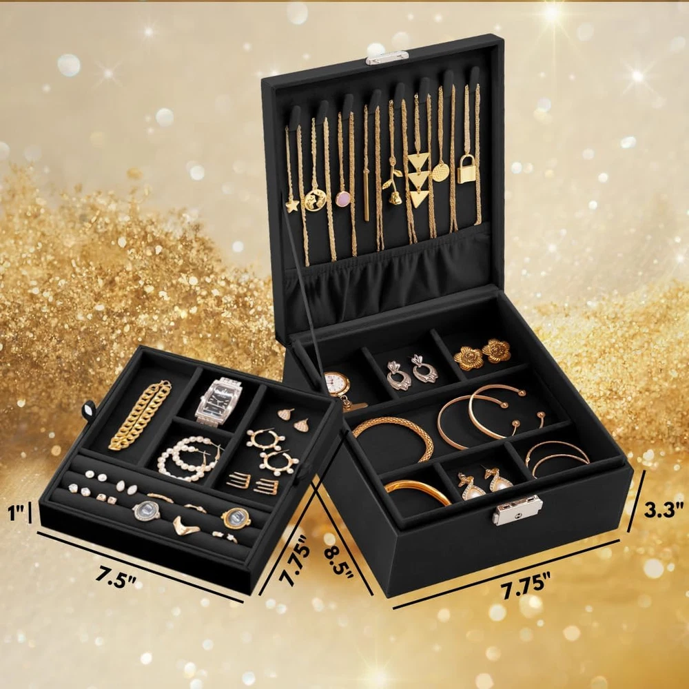 Store New Arrivals Add to Favorite View Feedback Contact 2 Layer Woman Jewelry Box, Jewelry Organizer for Woman, Men & Girls Large Case 8.5X7.5X3.3In | PU Leather Black Jewelry Gift Storage Boxes for Ring, Necklace & Bracelet with Lock Description Item model number Case-0024 closed Style Elegant Number of Items 1 Closure Type Key Lock Country of Origin China Warranty Type [INF] Designed to last Batteries Included? No Jewelry Storage Type Jewelry Box Batteries Required? No Number of Compartments 14 Target Audience Women, Men, Boys, Girls Product Dimensions 8.5"D x 7.5"W x 3.3"H Material Faux Leather Number of Drawers 2 Finish Type PU leather Item Package Quantity 1 Item Weight 1.99 pounds Finish PU leather Occasion Christmas, New Year, Anniversary, Birthday, Valentine's Day Special Features Key Lock Special Feature Key Lock Part Number Case-0021 Mounting Type jewelry Box Color Black Inner Material velvet Shape Square Recommended Uses For Product Necklace, Bracelet, Ring, Watch, Earring, Bangle Included Components Key Size 8.5 x 7.5 x 3.3 Large jewelry box : The jewelry box features a double-layer design with a removable tray, maximizing space for earrings, necklaces, bracelets, and rings. It includes various compartments, such as necklace hooks and slots, to accommodate different jewelry types. The box's dimensions (8.5 x 7.5 x 3.3 inches) provide generous storage space while conserving your vanity's space Secure & Elegant: the jewelry box is Designed with lock to ensure your valuables remain safe. The exterior is finished with a stylish PU leather, adding sophistication to any room, while the compartments help keep your jewelry organized and easily accessible, Sophisticated Elegance - Enveloped in a luxurious alligator-style PU leather exterior, available in your choice of gray, pink, or black. closed cover or with a window, Our jewelry boxes exude an air of refinement, gracing dressers and vanity tables with their exquisite presence. Exquisite Craftsmanship - This jewelry box for women and men has been designed to last with an easily cleanable exterior and an anti-tarnish, velvety inner that keeps your pieces protected against dust, fingerprints, scratches and damage. Constructed with a sturdy wooden frame to last for years to come. Perfect Gift - Treat the jewelry lover in your life to a taste of luxury and cater to their ever-growing collection with this jewelry storage box. Ideal on birthdays, Mother's Day, Christmas, Valentine's Day, anniversaries or 'just because'. Product Description ABOUT US We offer the best prices around on high quality products. Our E-store includes media such as books, movies, music and games while offering electronics, toys, sporting apparel, clothing, tools, general home, garden items and more. SHIPPING We are always working hard to ensure your package arrives as soon as possible. Please understand that some factors like weather, high postal traffic, and the performance of shipping companies are outside of our control. We offer free shipping to the lower 48 states and ship within 2 business days of payment, usually sooner. We do not accept P.O. Boxes. Please provide a physical address. For shipping outside of the continental USA, we only use eBay's Global Shipping Program.The item is shipped to KY and then sent to the rest of the world. International customers are responsible for all duties and taxes. Continue to check out in order to calculate costs for shipping the item to your country. Messages regarding eBay's Global Shipping Program MUST be directed at eBay EXCLUSIVELY. RETURNS We offer a 30-Day Return Policy on items which you are not completely satisfied with. You have the option for a full-refund or an exchange of the item. No returns are available on items shipped outside of the USA. PAYMENT We accept PayPal. CONTACT US This page content is yet to come Please ad us to your favorite seller and visit again later Thank You CUSTOMER SATISFACTION We try our very best to make sure every customer is completely satisfied. If there's a problem, message us! We're happy to help. WE ACCEPT Copyright © 2021 AutoDS. | All Rights Reserved